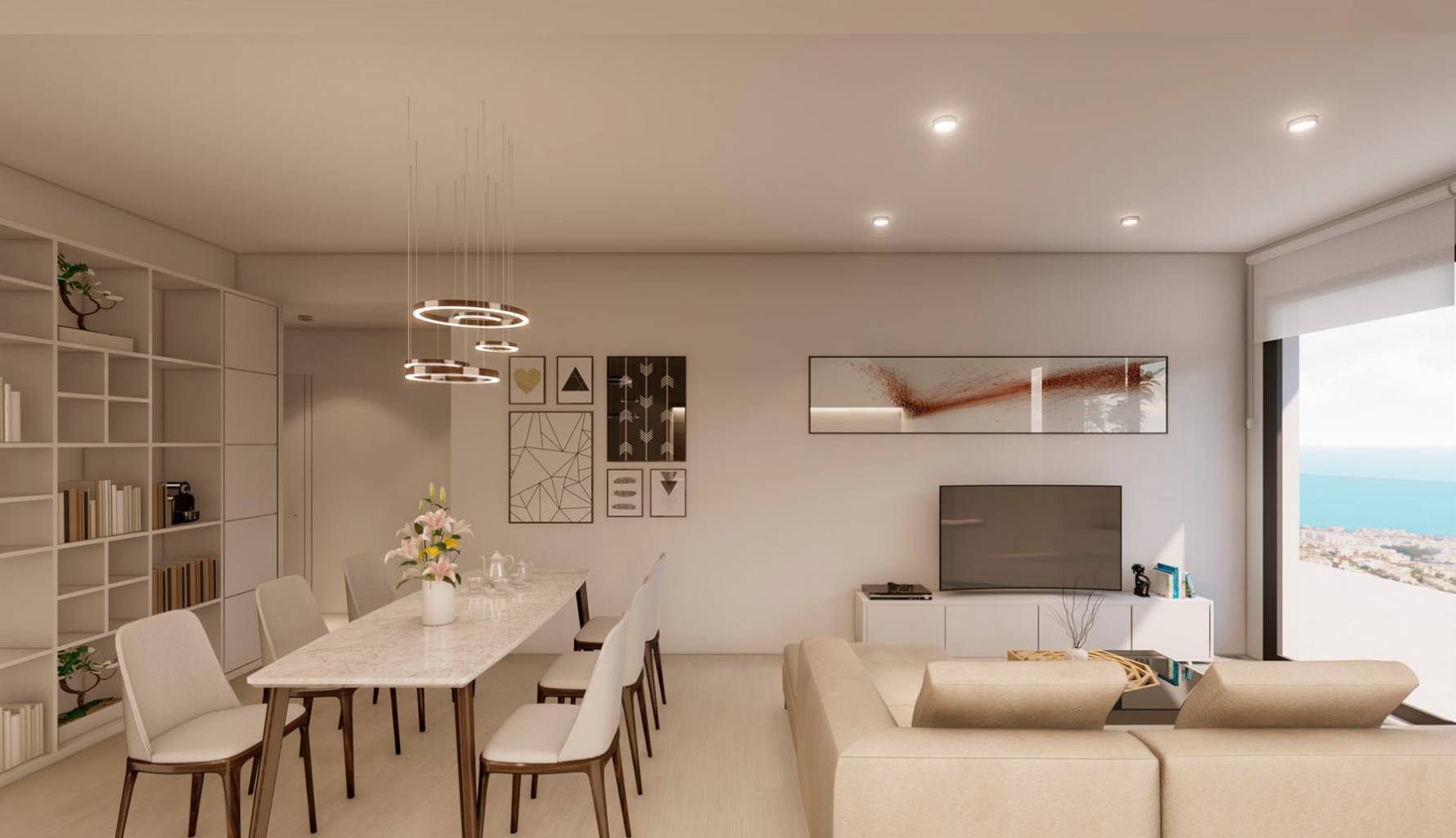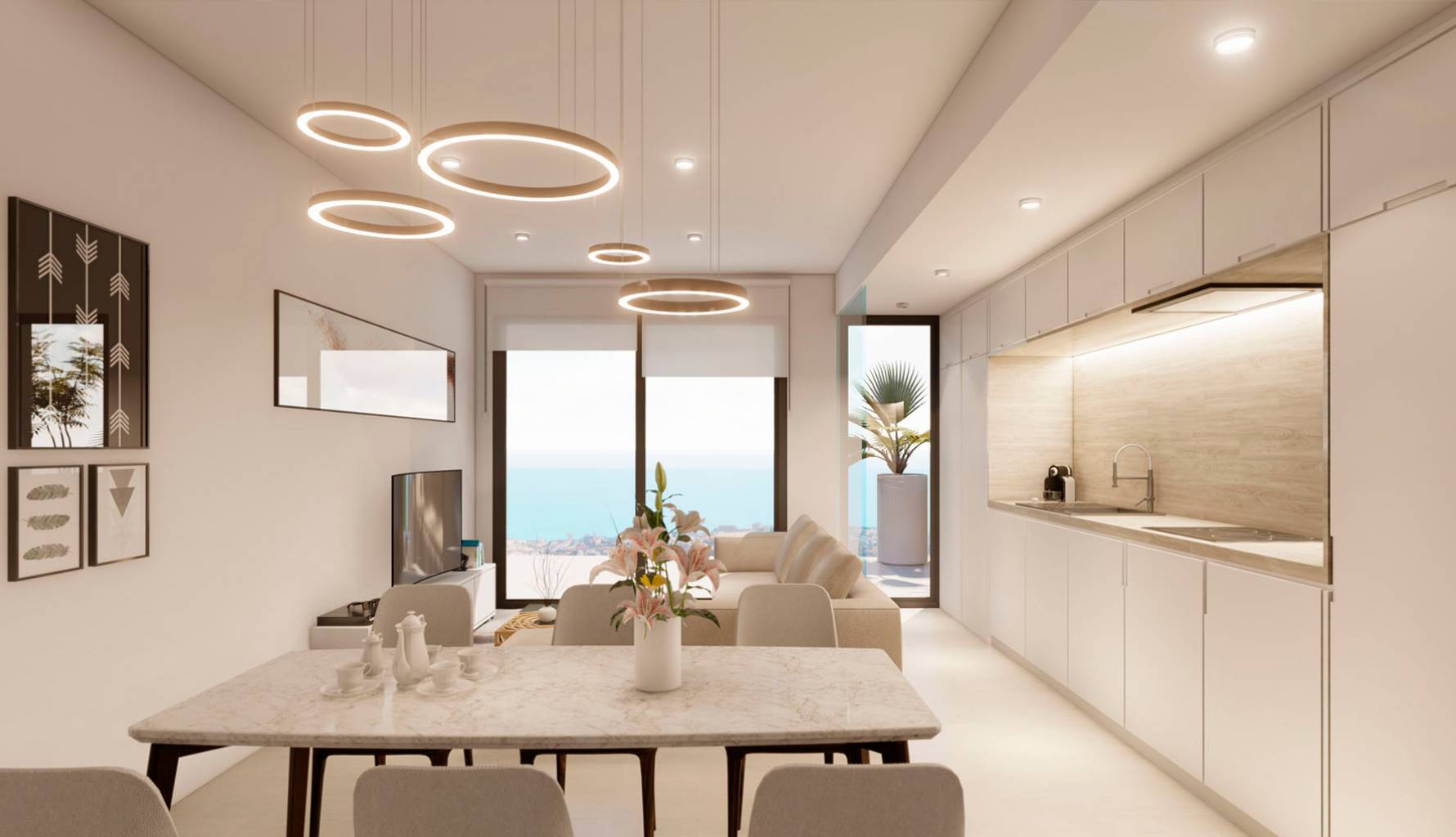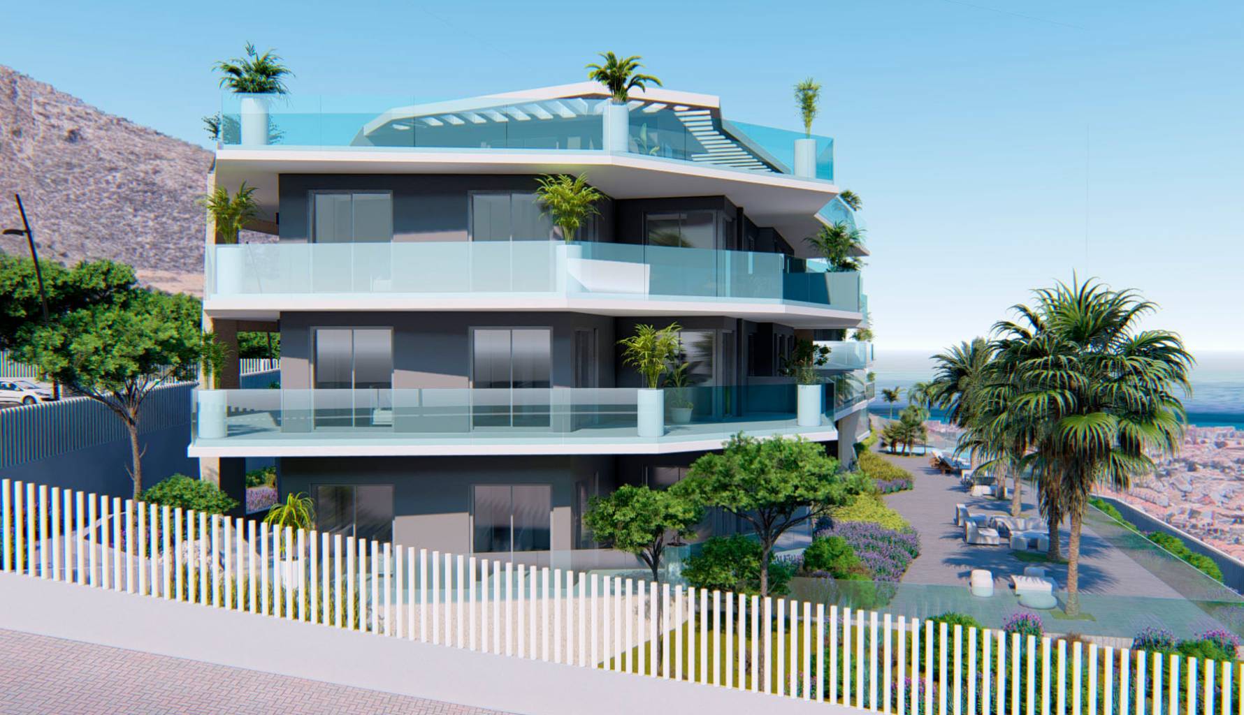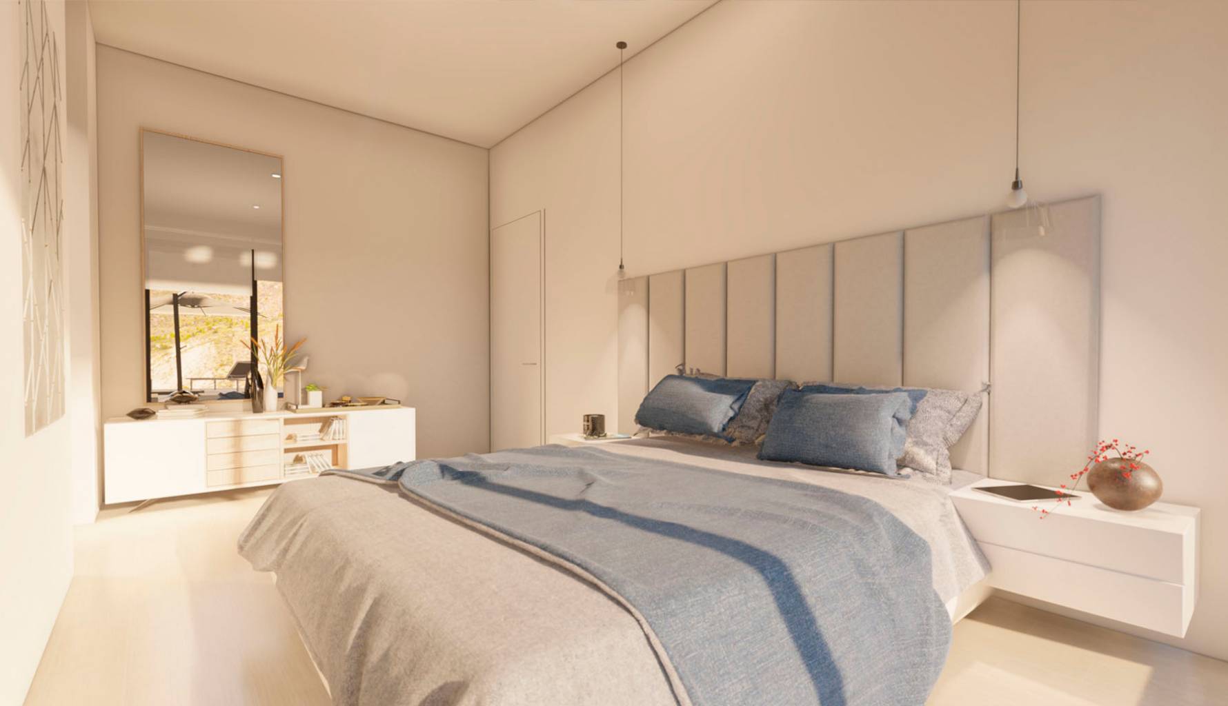 Los interiores de los áticos están diseñados para ofrecer el máximo confort y funcionalidad. Las propiedades disponen de dos o tres dormitorios, según la tipología, y dos baños completos, garantizando espacio suficiente para familias o parejas. La distribución incluye un garaje privado y un solárium, proporcionando opciones adicionales de almacenamiento y ocio. Los áticos están equipados con aire acondicionado, electrodomésticos modernos y armarios empotrados, asegurando un ambiente acogedor y práctico. Además, cuentan con videoportero, añadiendo un nivel extra de seguridad y comodidad para los residentes.
