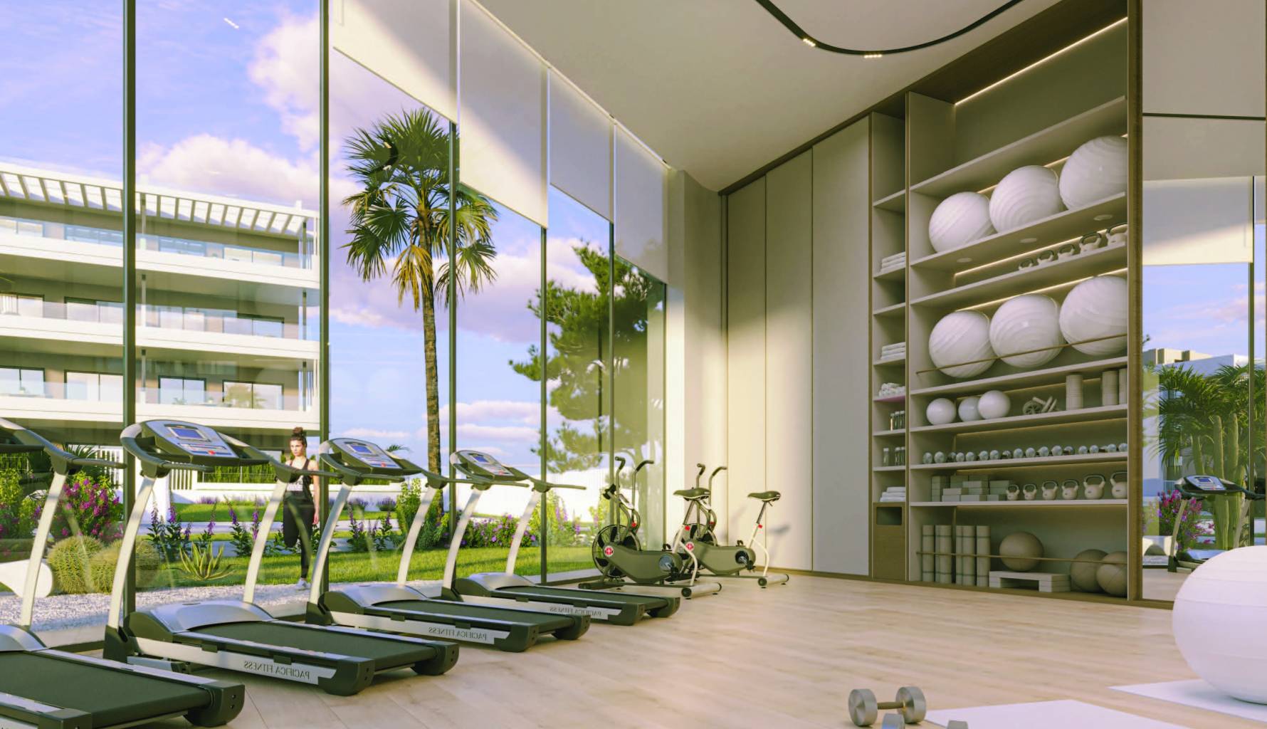 Los exteriores de estas viviendas están pensados para maximizar el disfrute del clima mediterráneo. Las propiedades cuentan con terrazas amplias, ideales para relajarse al aire libre o disfrutar de una comida con vistas al mar. Las plantas bajas ofrecen la ventaja adicional de un jardín privado, perfecto para quienes desean un espacio verde propio. Además, los áticos disponen de solárium, un lugar exclusivo para tomar el sol en total privacidad. La cercanía al mar, a solo 4 km, asegura que las actividades al aire libre sean una parte integral del estilo de vida aquí.