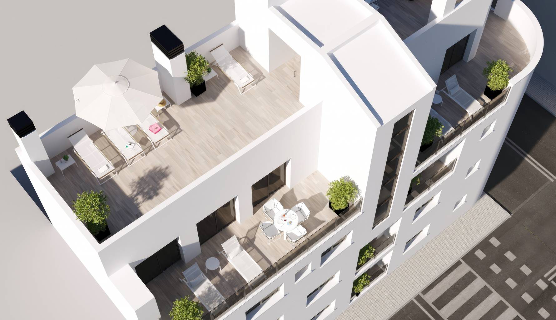 Los exteriores de este residencial en Torrevieja están diseñados para maximizar el disfrute del clima mediterráneo. Las propiedades cuentan con terrazas, ideales para relajarse al aire libre y disfrutar de las vistas. Además, los áticos disponen de solárium, proporcionando un espacio adicional para el ocio y el descanso. La cercanía al mar, a solo 700 metros, permite disfrutar de actividades al aire libre y de la belleza del entorno costero. La ubicación estratégica también ofrece fácil acceso a servicios y comodidades locales, haciendo de este residencial una opción atractiva para quienes buscan un equilibrio entre tranquilidad y conveniencia.