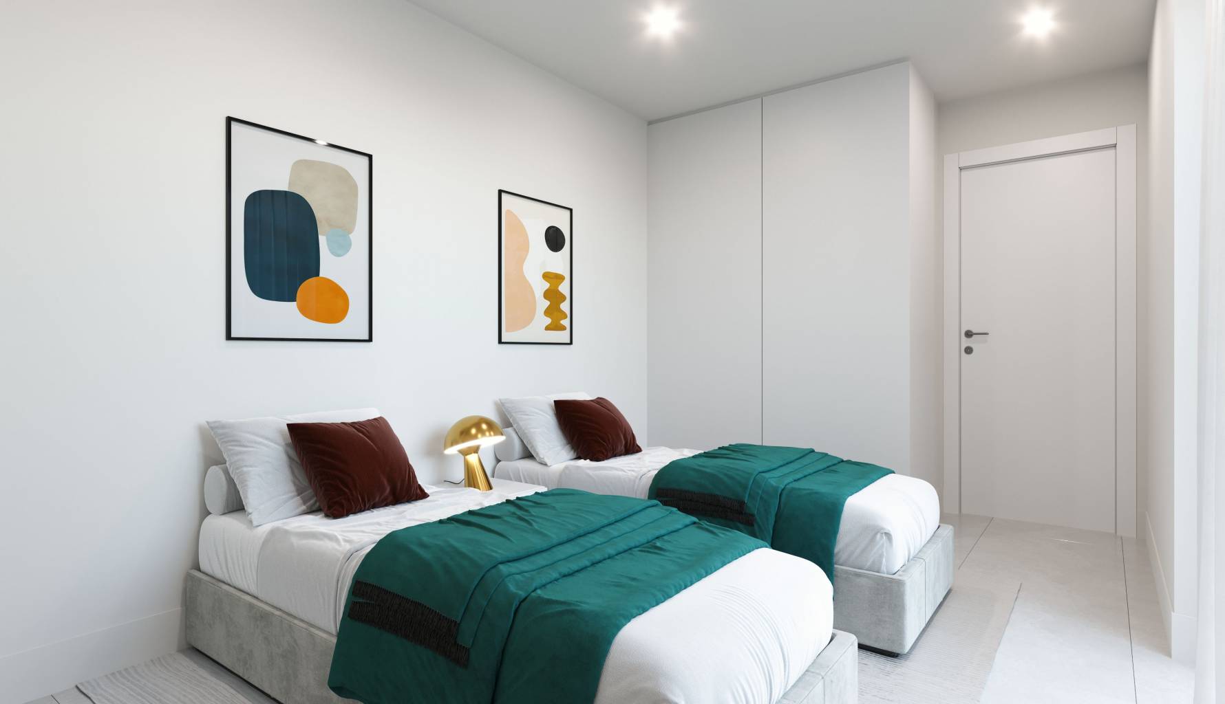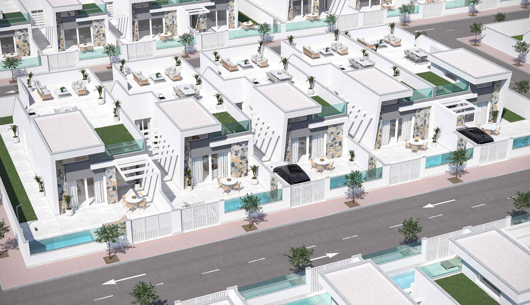 El interior de las villas está equipado con ventanas de aluminio y armarios empotrados. Cada hogar tiene una cocina completamente equipada con electrodomésticos, iluminación LED interior y preinstalación de aire acondicionado. Los baños están terminados con materiales de alta calidad y la vivienda incluye una bomba de calor aerotérmica para un uso eficiente de la energía.
