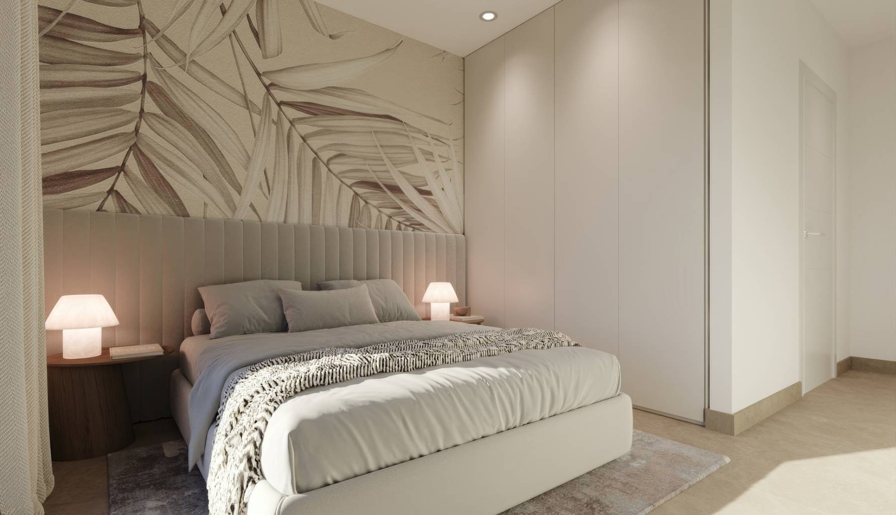 El interior de las viviendas está diseñado con un enfoque en la funcionalidad y el confort. Todas las propiedades cuentan con dos dormitorios y dos baños, ofreciendo un espacio adecuado para familias o parejas. Los suelos de gres porcelánico aportan un toque de elegancia y son fáciles de mantener. La preinstalación de aire acondicionado asegura que el clima interior sea siempre agradable, mientras que los armarios empotrados ofrecen un almacenamiento eficiente. La seguridad y comodidad están garantizadas con la inclusión de videoportero en cada unidad. Además, cada propiedad dispone de un garaje, proporcionando un espacio seguro para el estacionamiento.