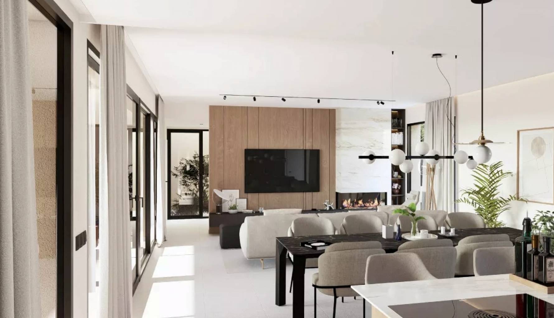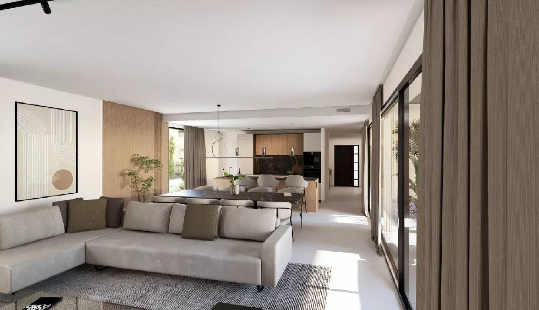 En el interior, la villa está equipada con todas las comodidades modernas. Dispone de cuatro dormitorios y cuatro baños, asegurando espacio y confort para toda la familia. La climatización está garantizada con aire acondicionado y calefacción por suelo radiante, proporcionando un ambiente agradable durante todo el año. Los electrodomésticos de última generación y los armarios empotrados completan las características interiores, ofreciendo funcionalidad y estilo.