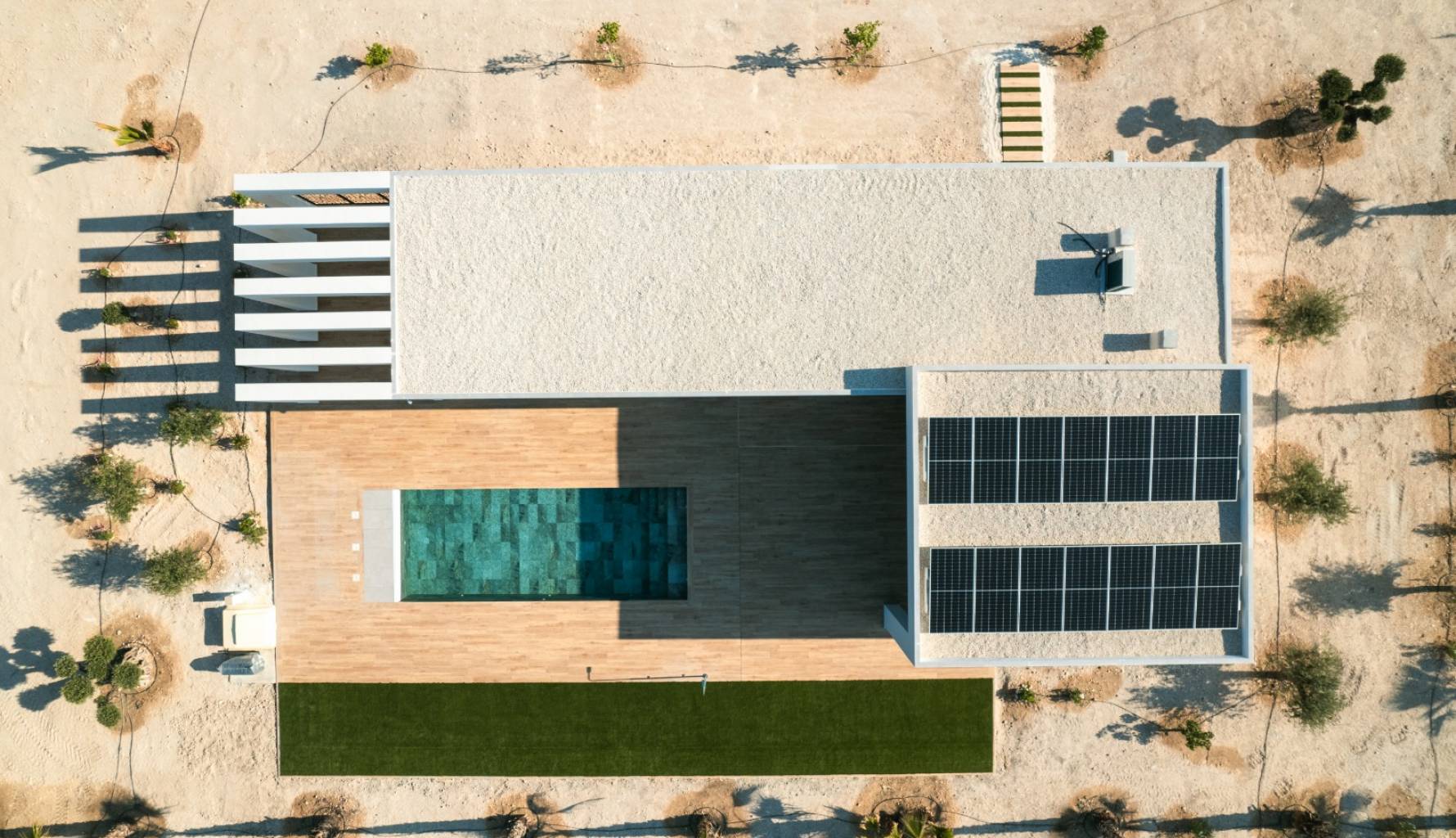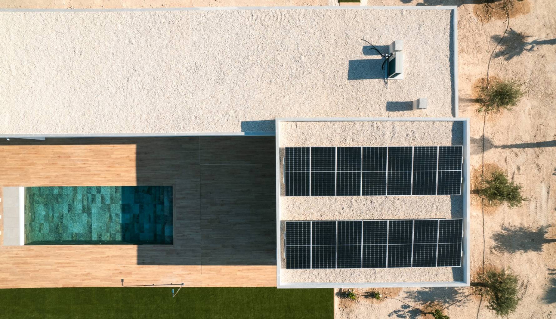 En el interior, la vivienda cuenta con tres dormitorios y dos baños, ofreciendo un espacio cómodo y funcional. La cocina está equipada con electrodomésticos modernos, asegurando comodidad en el día a día. El aire acondicionado y la preinstalación de aire acondicionado garantizan un ambiente agradable durante todo el año. Los armarios empotrados proporcionan un almacenamiento eficiente, manteniendo el orden y la organización en el hogar.
