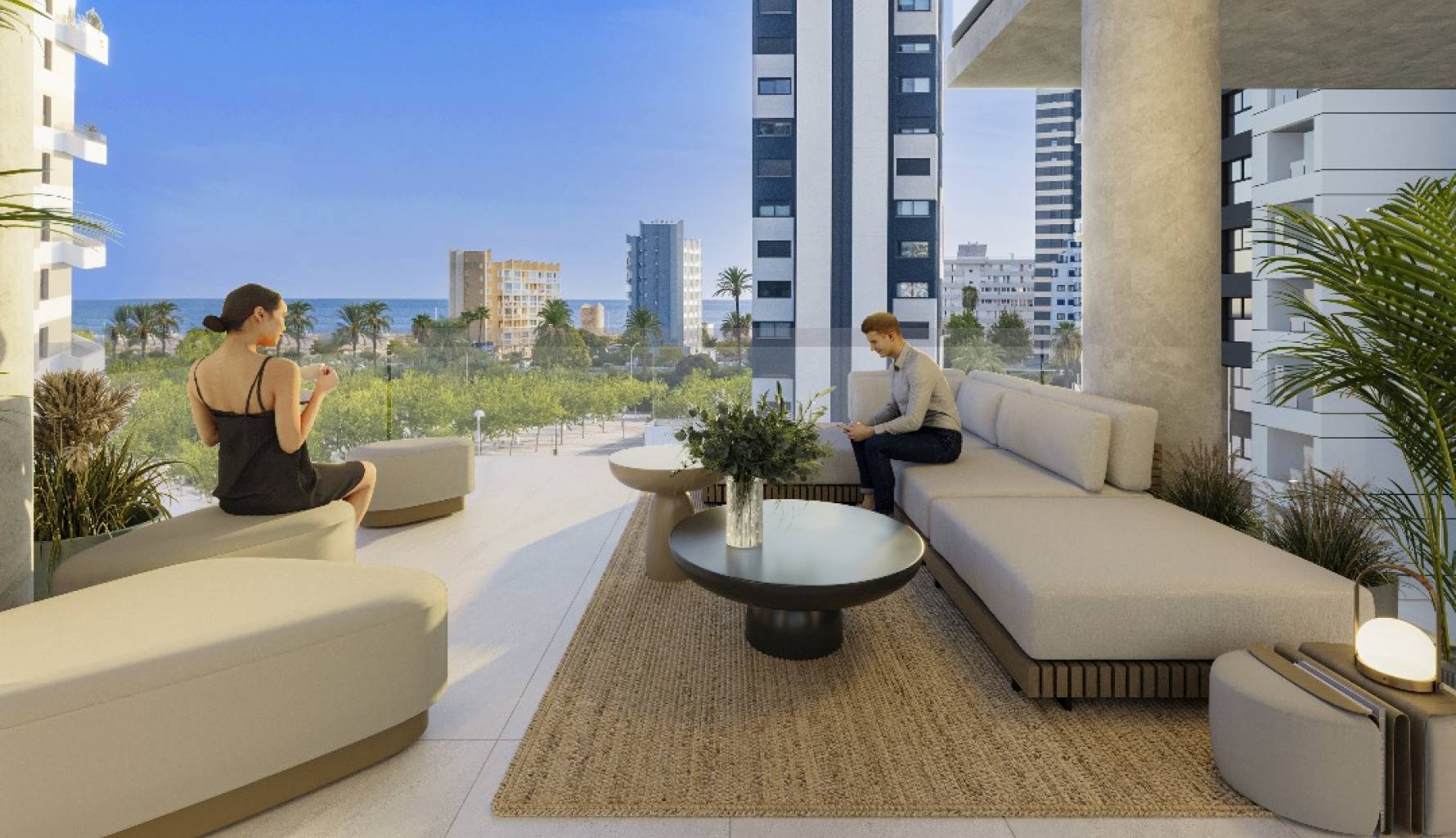 Los exteriores de estas propiedades están pensados para maximizar el disfrute del clima mediterráneo. Cada vivienda cuenta con una terraza privada, ideal para relajarse al aire libre. Además, los áticos disponen de un solárium, proporcionando un espacio adicional para tomar el sol o disfrutar de las vistas panorámicas. Para aquellos que valoran la privacidad, algunas propiedades ofrecen piscina privada, convirtiéndose en un oasis personal dentro del hogar.