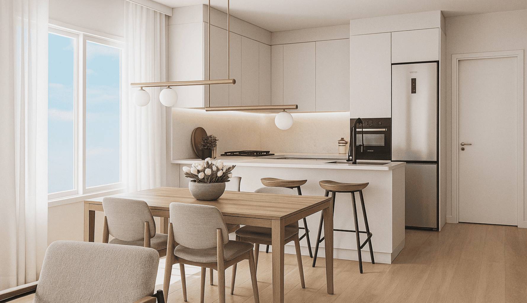 El interior de los bungalows está diseñado con atención al detalle, incorporando características modernas que garantizan confort y funcionalidad. Los suelos de gres porcelánico aportan un toque de elegancia y son fáciles de mantener, mientras que las persianas eléctricas y el videoportero añaden un nivel extra de comodidad y seguridad. Las viviendas están equipadas con electrodomésticos, facilitando la vida diaria desde el primer día. Además, cuentan con preinstalación de aire acondicionado, permitiendo a los residentes personalizar el clima interior según sus preferencias. Con opciones de uno a tres baños, cada bungalow está preparado para satisfacer las necesidades de diferentes tipos de familias.