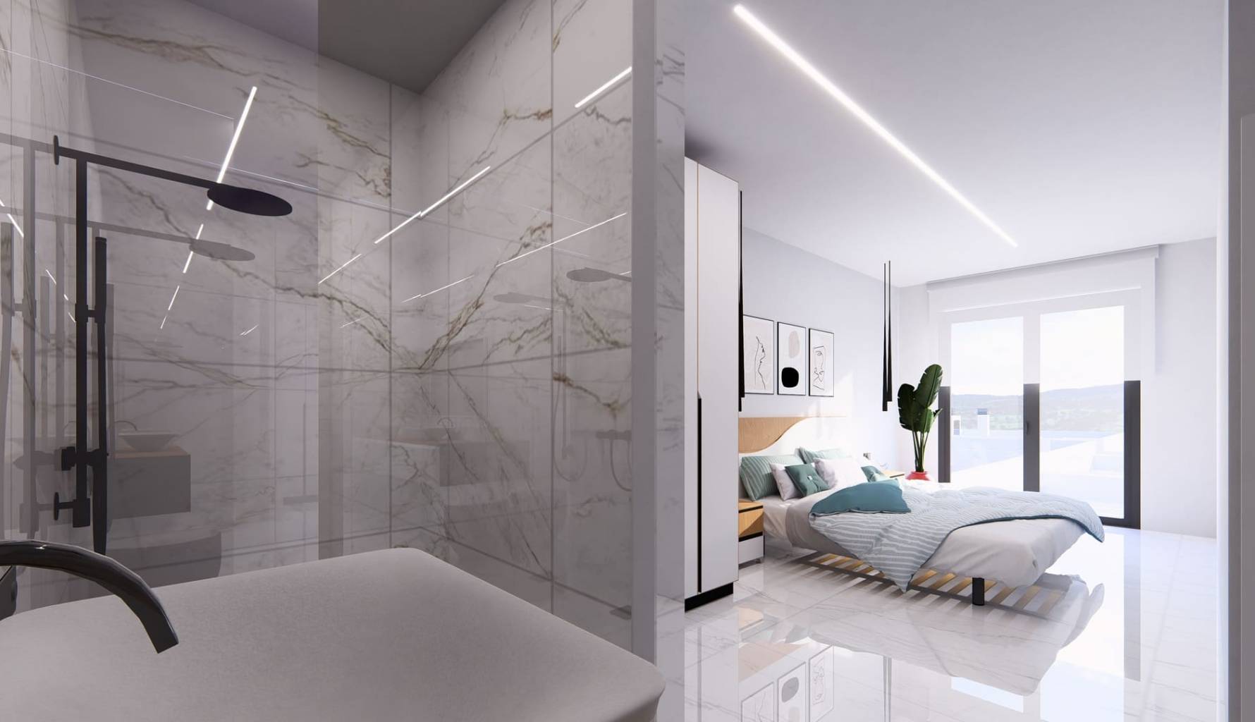 Los exteriores de estos bungalows han sido diseñados para maximizar el disfrute del clima mediterráneo. Cada propiedad cuenta con un jardín privado, ideal para relajarse o disfrutar de actividades al aire libre. Además, las terrazas ofrecen un espacio adicional para el ocio, permitiendo disfrutar de las vistas y del entorno natural que rodea La Finca Golf. Para aquellos que buscan un espacio adicional al aire libre, los bungalows también incluyen un solárium, perfecto para tomar el sol o disfrutar de las noches estrelladas. La ubicación en La Finca Golf asegura un entorno verde y bien cuidado, ideal para quienes valoran la naturaleza y la tranquilidad.