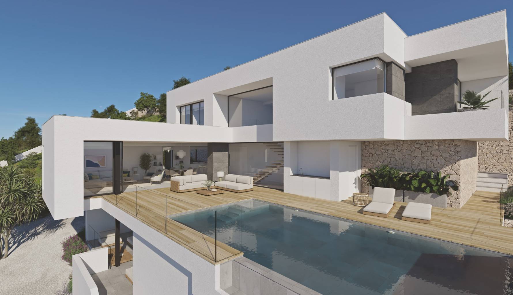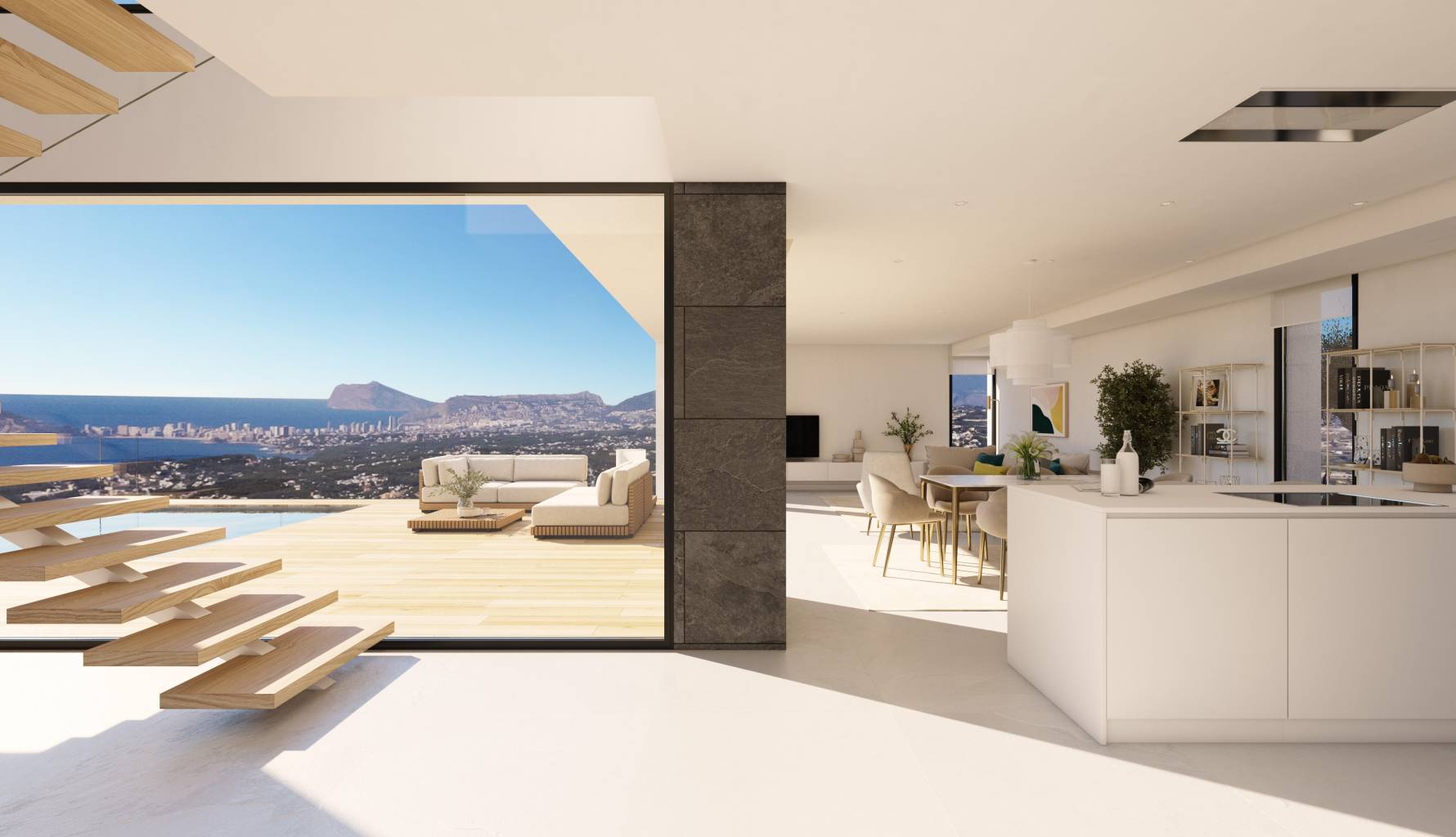 Ubicadas en la exclusiva zona de Cumbre del Sol, estas villas ofrecen un entorno privilegiado con impresionantes vistas al mar. Con una distancia de solo 0.5 km hasta la costa, estas propiedades son ideales para quienes buscan disfrutar de la tranquilidad y belleza del litoral mediterráneo. Las villas están diseñadas para proporcionar el máximo confort y funcionalidad, integrando características modernas y acabados de alta calidad.