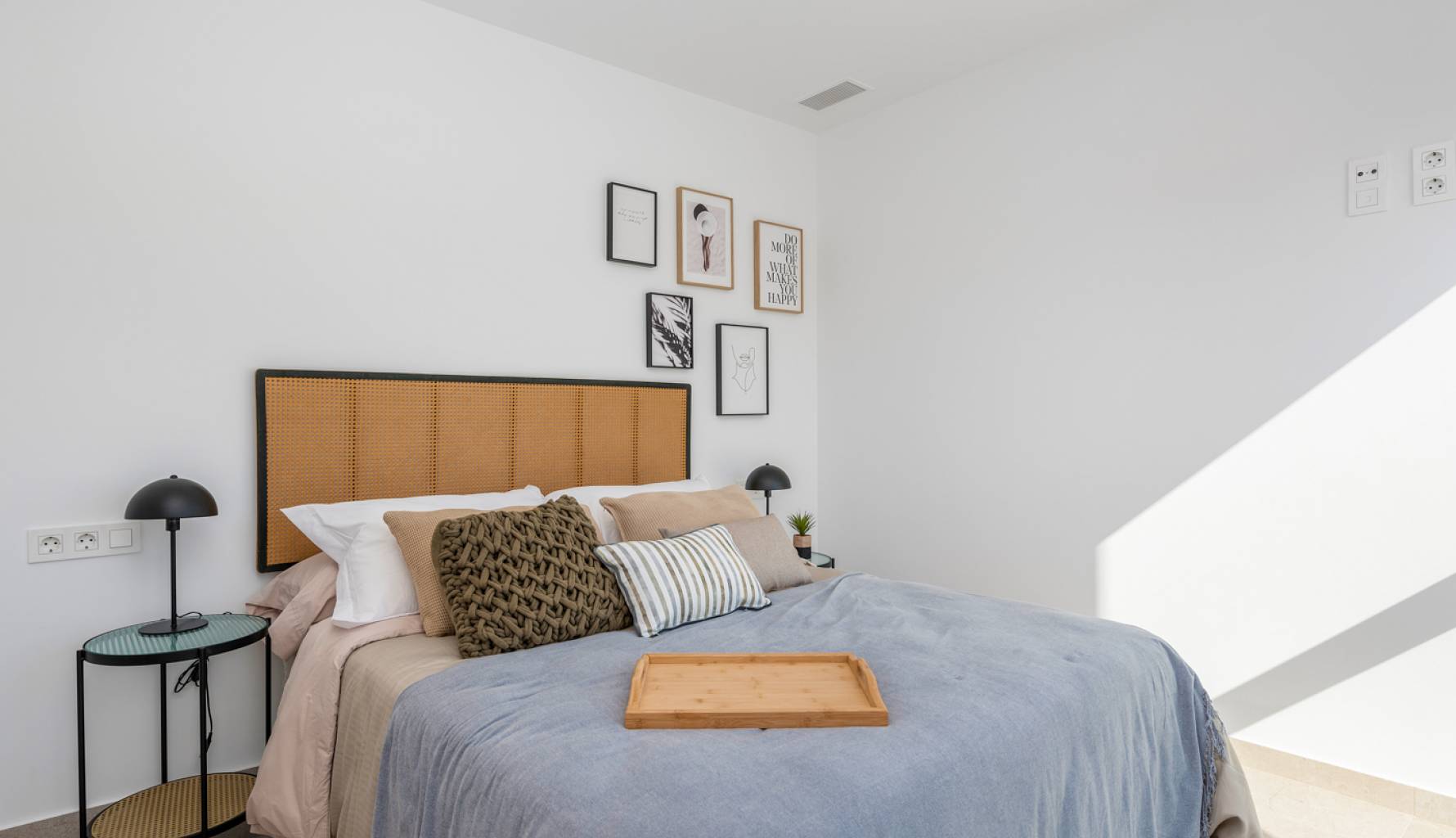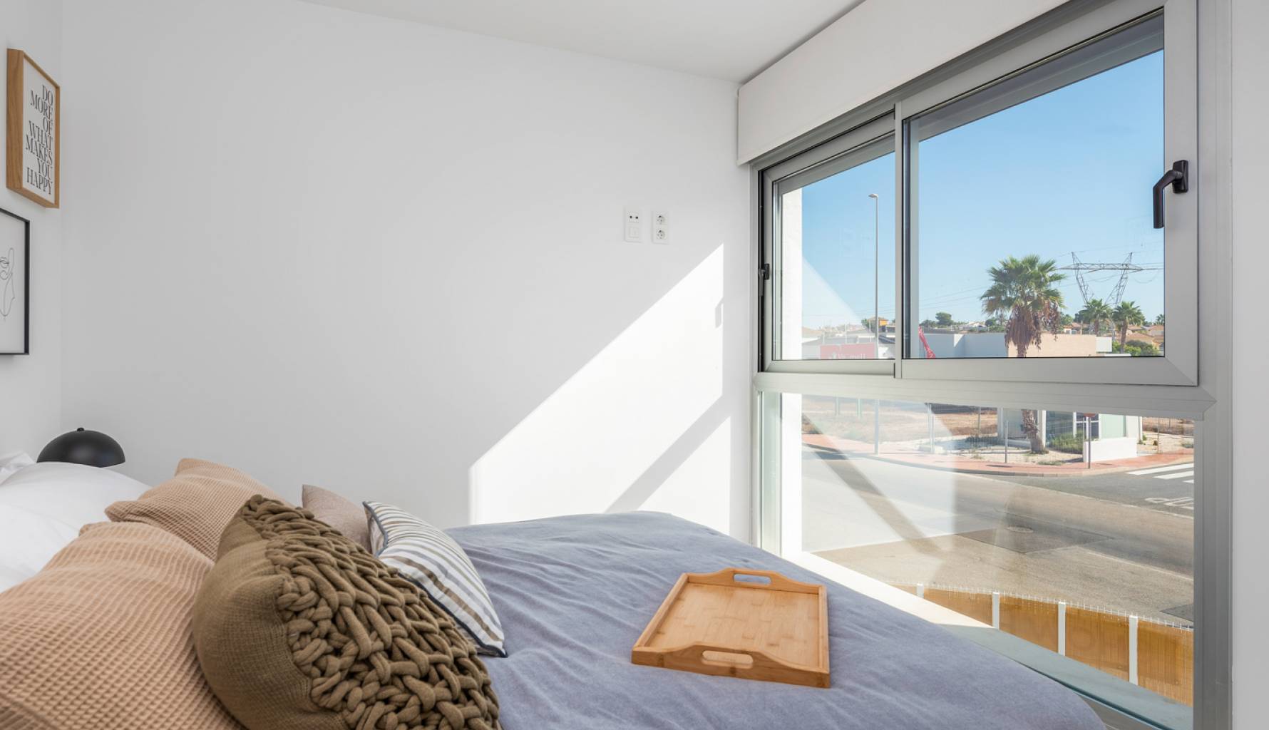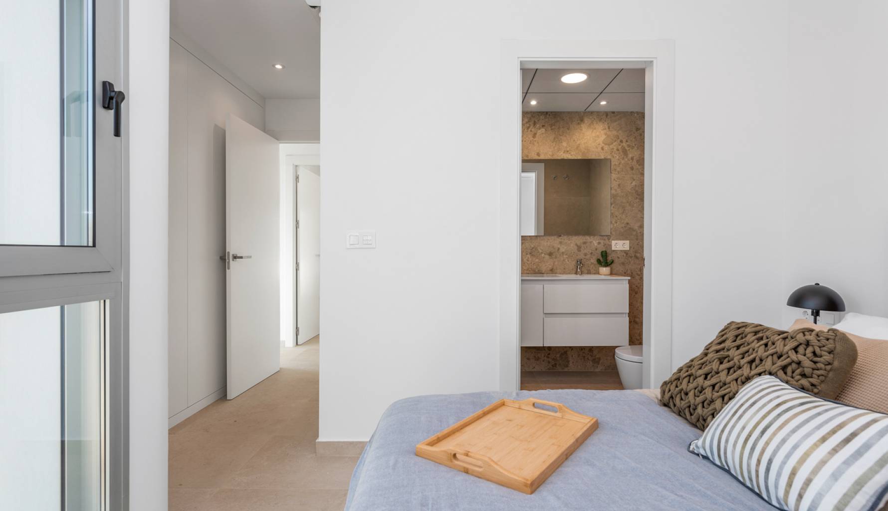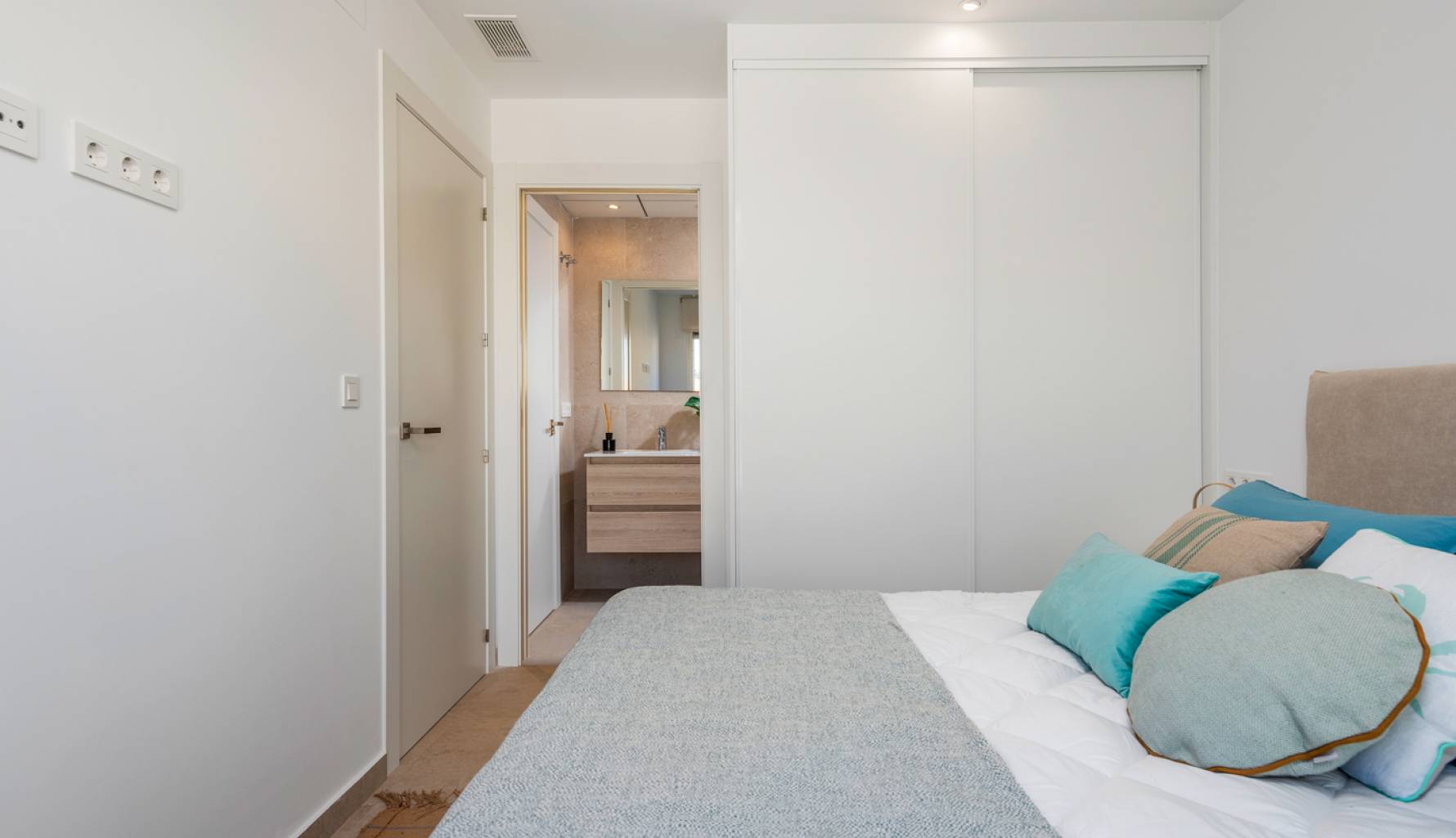 En el interior, las viviendas están equipadas con suelos de cerámica, lo que garantiza durabilidad y fácil mantenimiento. Las persianas eléctricas añaden comodidad y modernidad, mientras que los electrodomésticos incluidos facilitan la vida diaria. Las viviendas cuentan con 3 dormitorios y la opción de 2 o 3 baños, adaptándose a las necesidades de cada familia. Los armarios empotrados ofrecen un almacenamiento eficiente, y la preinstalación de aire acondicionado asegura un ambiente confortable durante todo el año. La distribución está pensada para maximizar el espacio y la funcionalidad, con un diseño que invita a disfrutar de cada rincón del hogar.