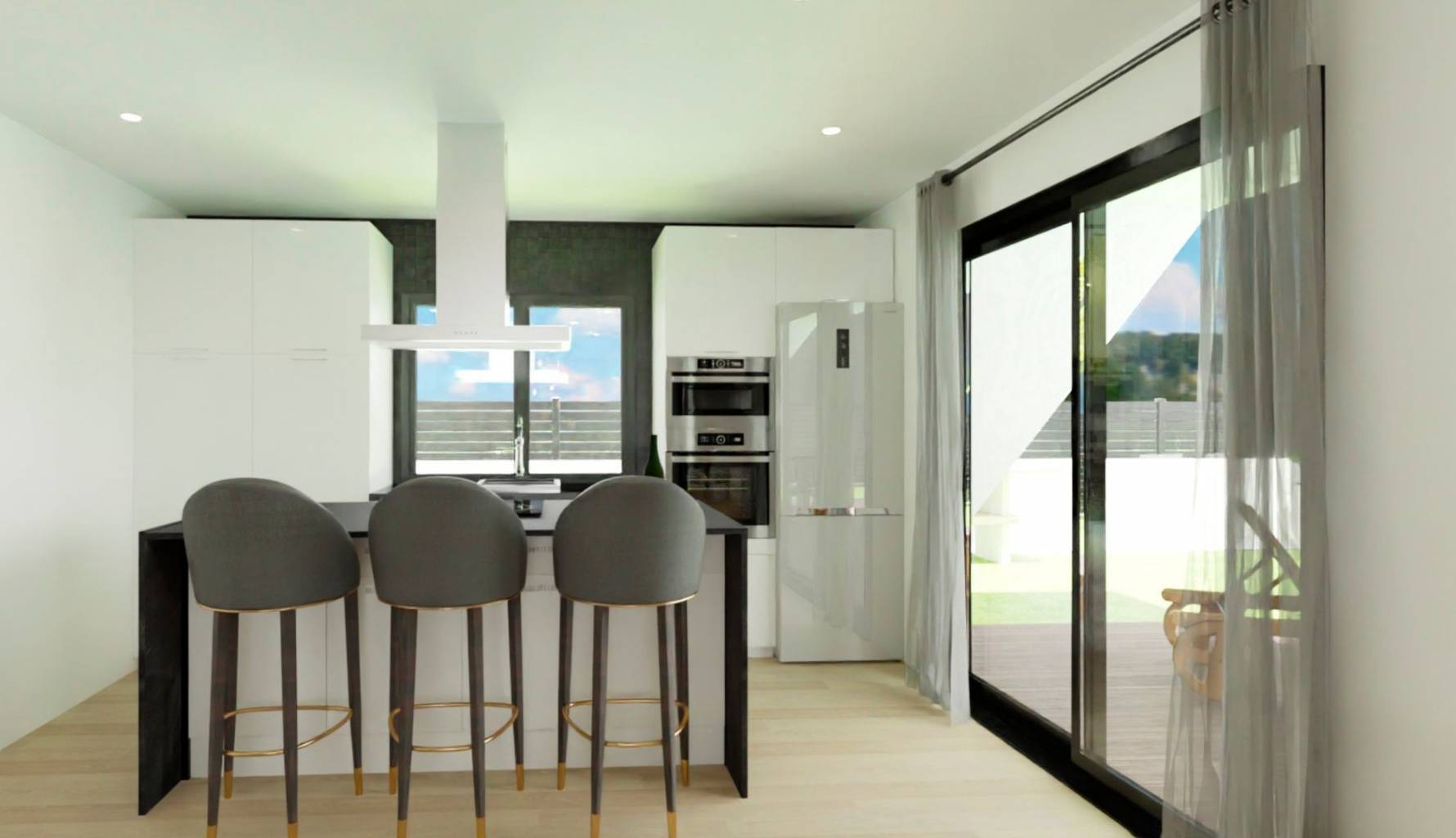Las viviendas cuentan con un diseño que integra perfectamente los espacios exteriores, ofreciendo jardines privados donde disfrutar del clima mediterráneo. Cada propiedad tiene la opción de incluir una piscina privada, permitiendo a los residentes personalizar su hogar según sus preferencias. Las terrazas son otro de los atractivos, proporcionando un espacio adicional para el ocio al aire libre, ya sea para relajarse o para disfrutar de reuniones con amigos y familiares.