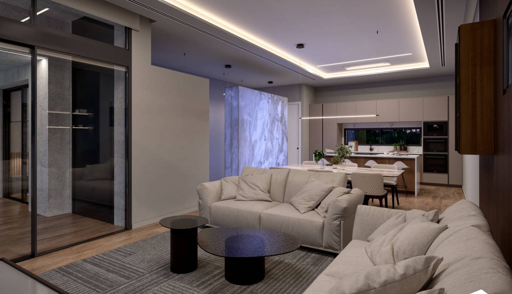 El interior de estas viviendas independientes está diseñado para ofrecer el máximo confort y funcionalidad. Con un total de 3 dormitorios y 3 baños, cada espacio está cuidadosamente distribuido para optimizar el uso del espacio. Los suelos de cerámica aportan un toque moderno y son fáciles de mantener. Las persianas eléctricas y los armarios empotrados son características estándar que mejoran la comodidad diaria. La distribución incluye amplias áreas de estar que se integran con el exterior, creando un flujo continuo entre los espacios interiores y exteriores.