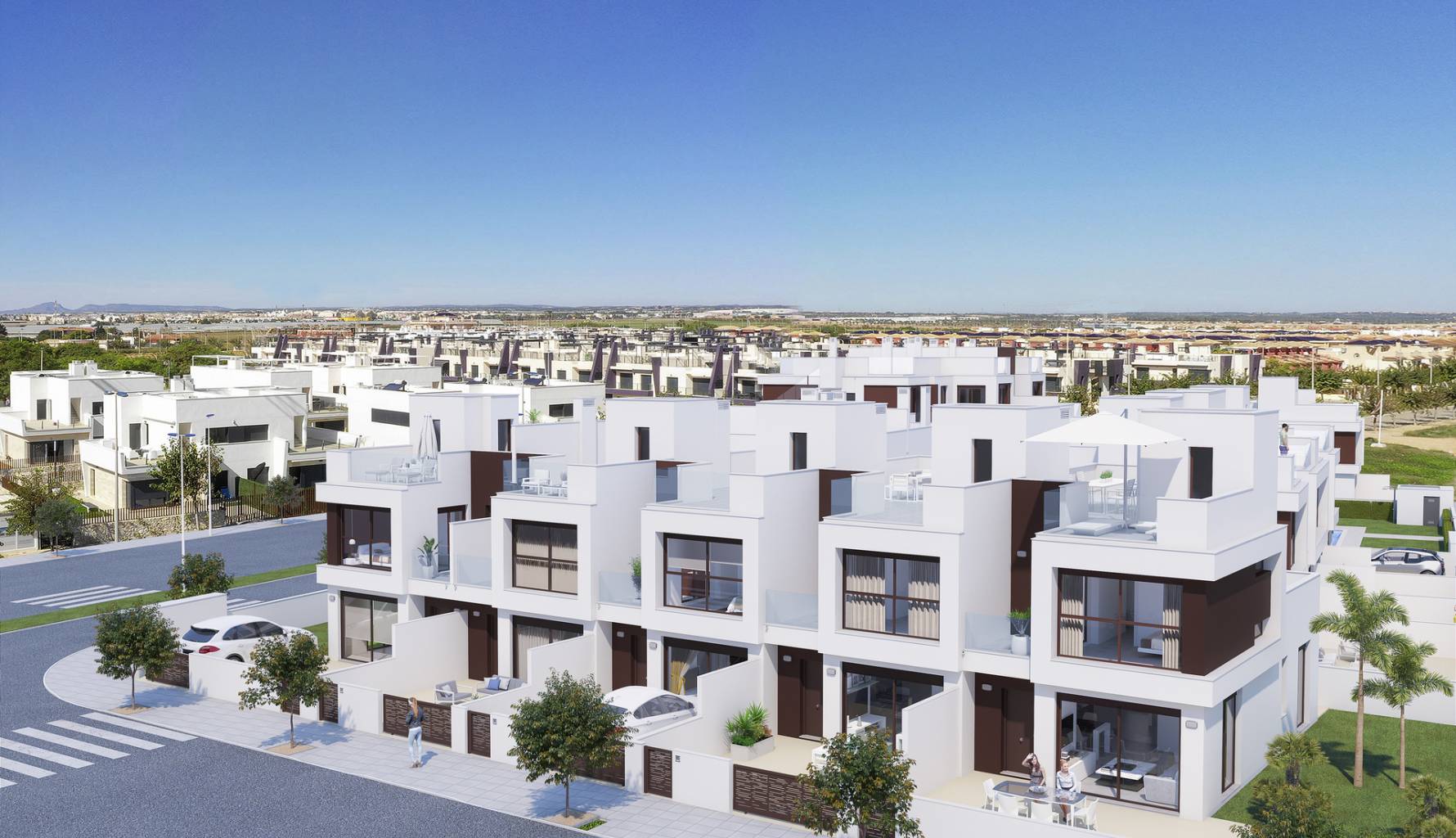 Las propiedades cuentan con características exteriores que realzan su atractivo y funcionalidad. Cada vivienda dispone de una terraza privada, perfecta para disfrutar del clima mediterráneo y las vistas al mar. Además, algunas tipologías incluyen un solárium, proporcionando un espacio adicional al aire libre para relajarse o socializar. Los jardines privados son una opción disponible en ciertas viviendas, ofreciendo un oasis personal de tranquilidad. Para aquellos que buscan un toque de lujo, algunas propiedades cuentan con piscina privada, ideal para refrescarse en los días calurosos. El diseño exterior se complementa con persianas eléctricas, que no solo añaden comodidad, sino también un toque moderno y elegante.