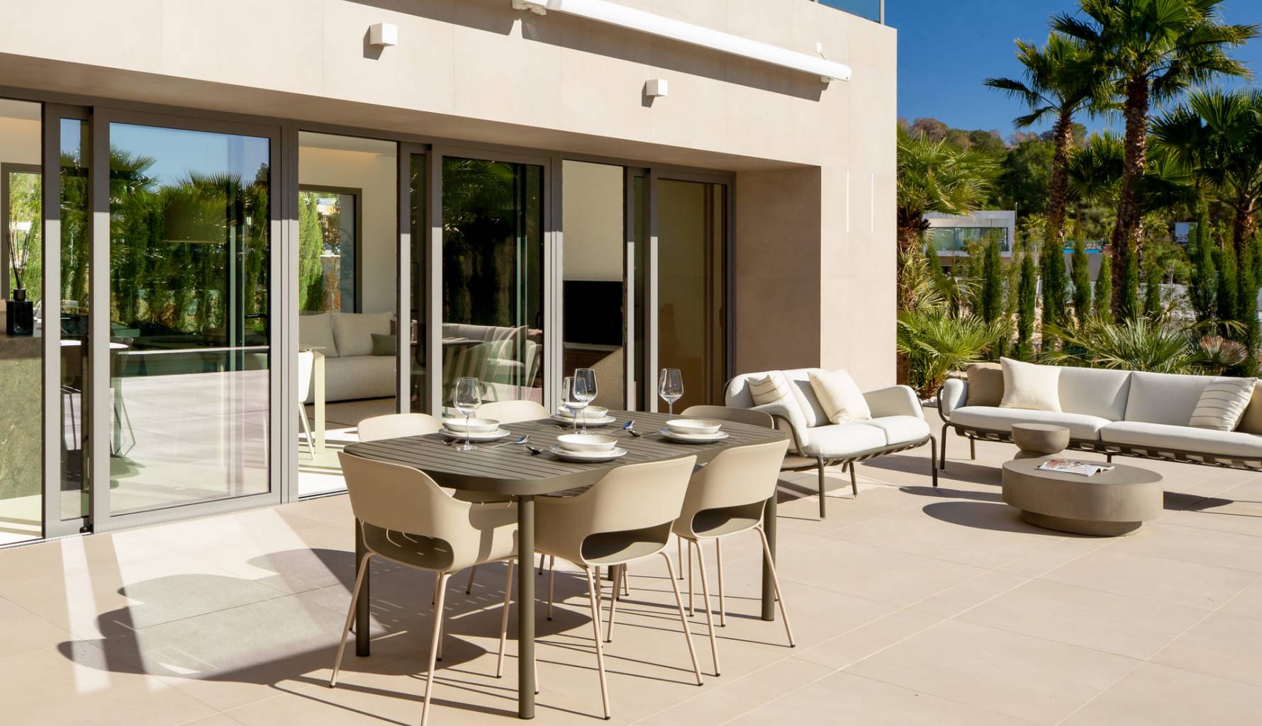 The properties feature outdoor spaces designed to maximize enjoyment of the Mediterranean climate. Each home has a private garden, perfect for creating a personal oasis of relaxation. Additionally, the terraces offer extra space to enjoy outdoor dining or simply relax at the end of the day. The inclusion of a private pool in each property adds a touch of luxury, allowing residents to enjoy a refreshing dip in the comfort of their home. These outdoor spaces are designed to offer privacy and comfort, becoming the perfect place to enjoy unforgettable moments with family and friends.