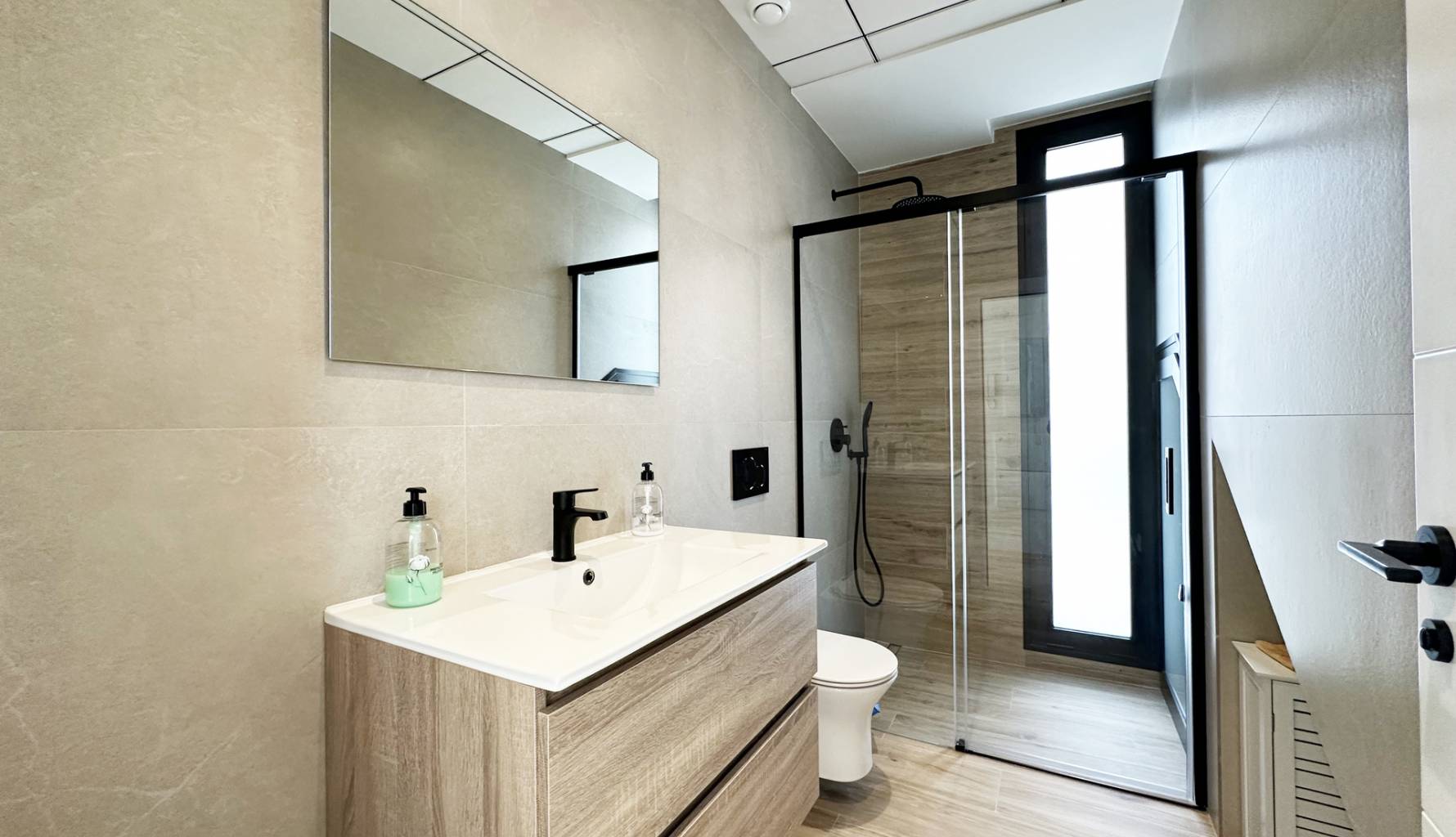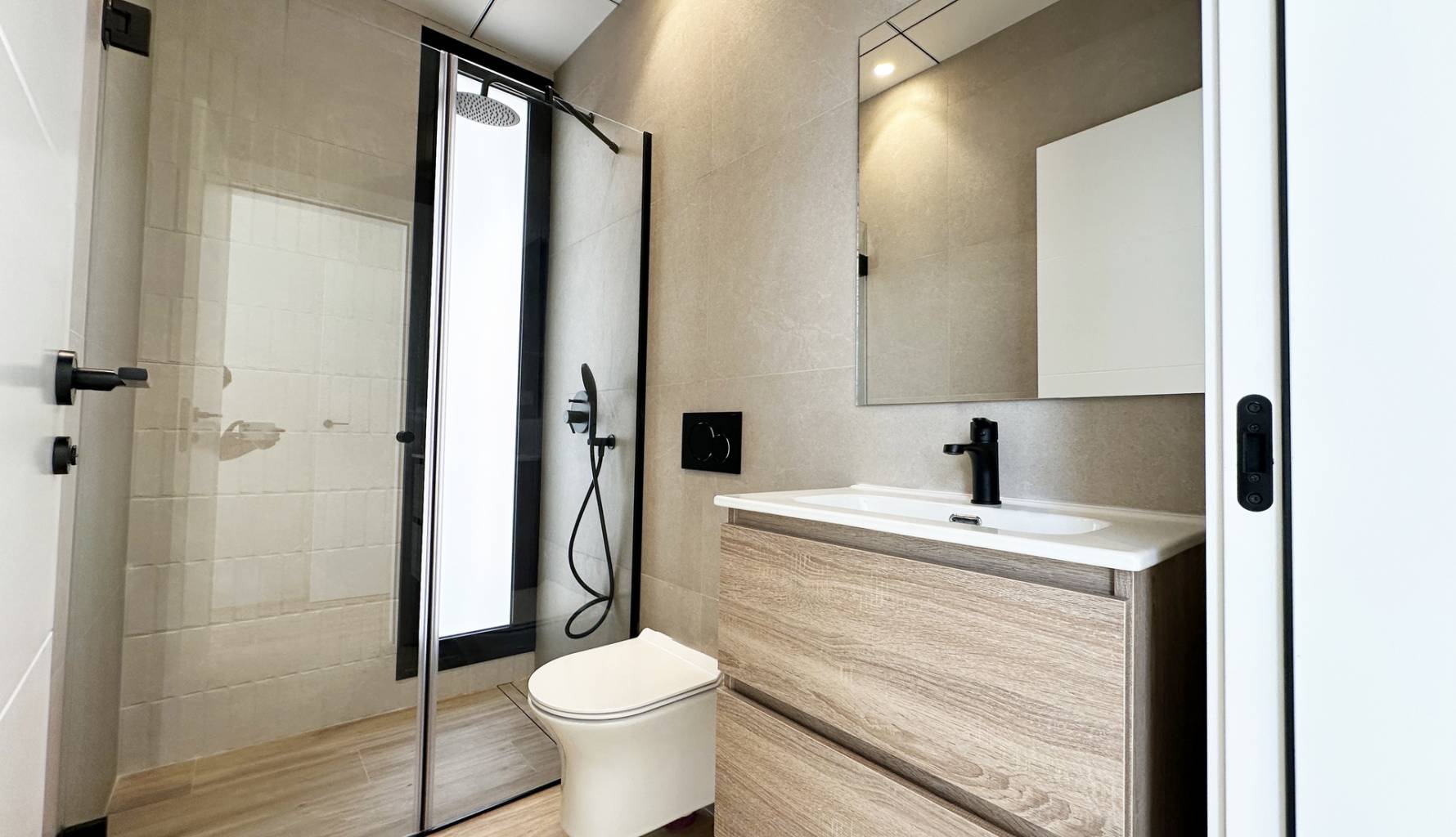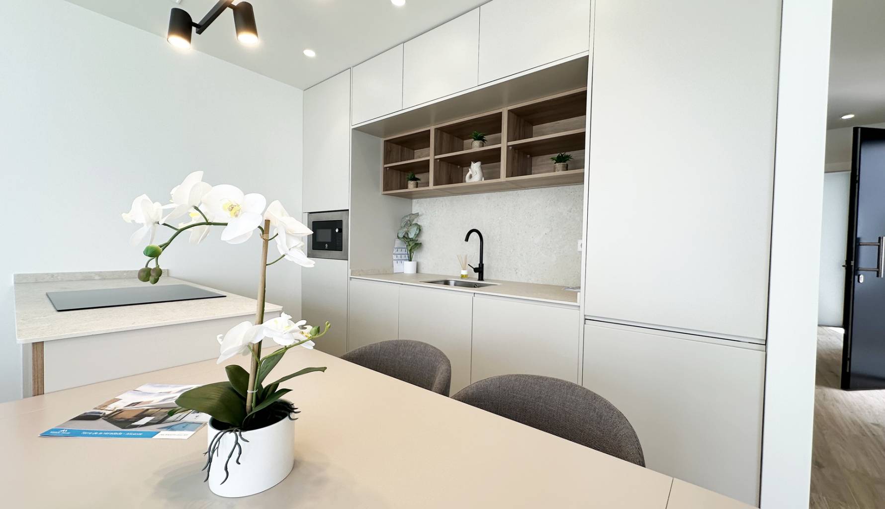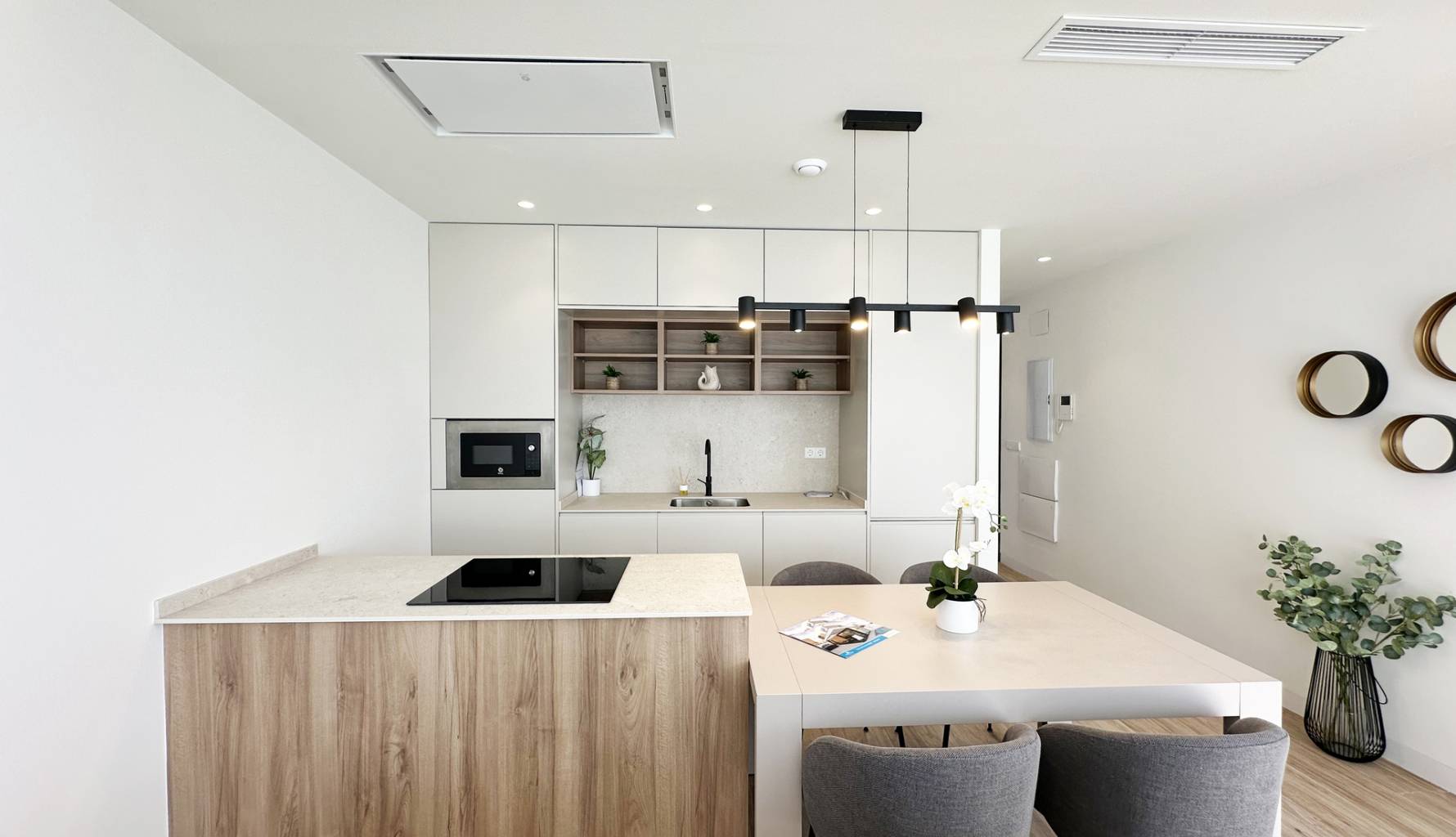 The interiors of these detached homes in Torre de la Horadada are designed to offer maximum comfort and functionality. Ceramic floors provide a modern touch and are easy to maintain, while the air conditioning system ensures a pleasant environment year-round. The homes are equipped with high-quality appliances, facilitating daily tasks and enhancing the living experience. Built-in wardrobes provide ample storage space, maintaining order and organization in the home. Additionally, electric shutters and the video intercom add an extra level of convenience and security, allowing efficient control of access to the home.