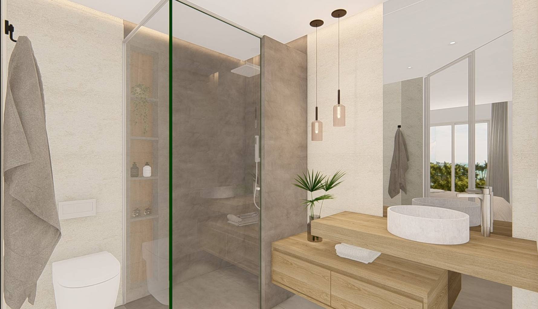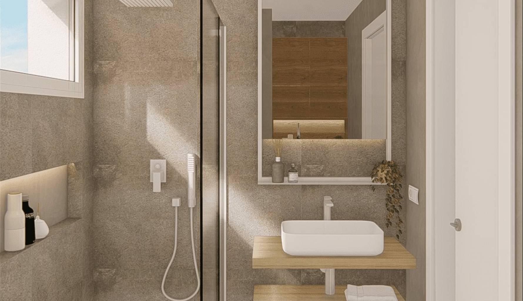The homes are equipped with features that ensure maximum comfort and functionality. The apartments, ground floors, and penthouses offer 2 and 3-bedroom options, all with 2 bathrooms, ensuring ample space for families or couples. The interiors feature built-in wardrobes, optimizing storage and maintaining a clean and orderly design. Ceramic and parquet floors add a touch of elegance and warmth to the spaces. Additionally, the properties include a garage, adding an extra level of convenience and security for residents. The interior design is intended to offer a cozy and modern environment.