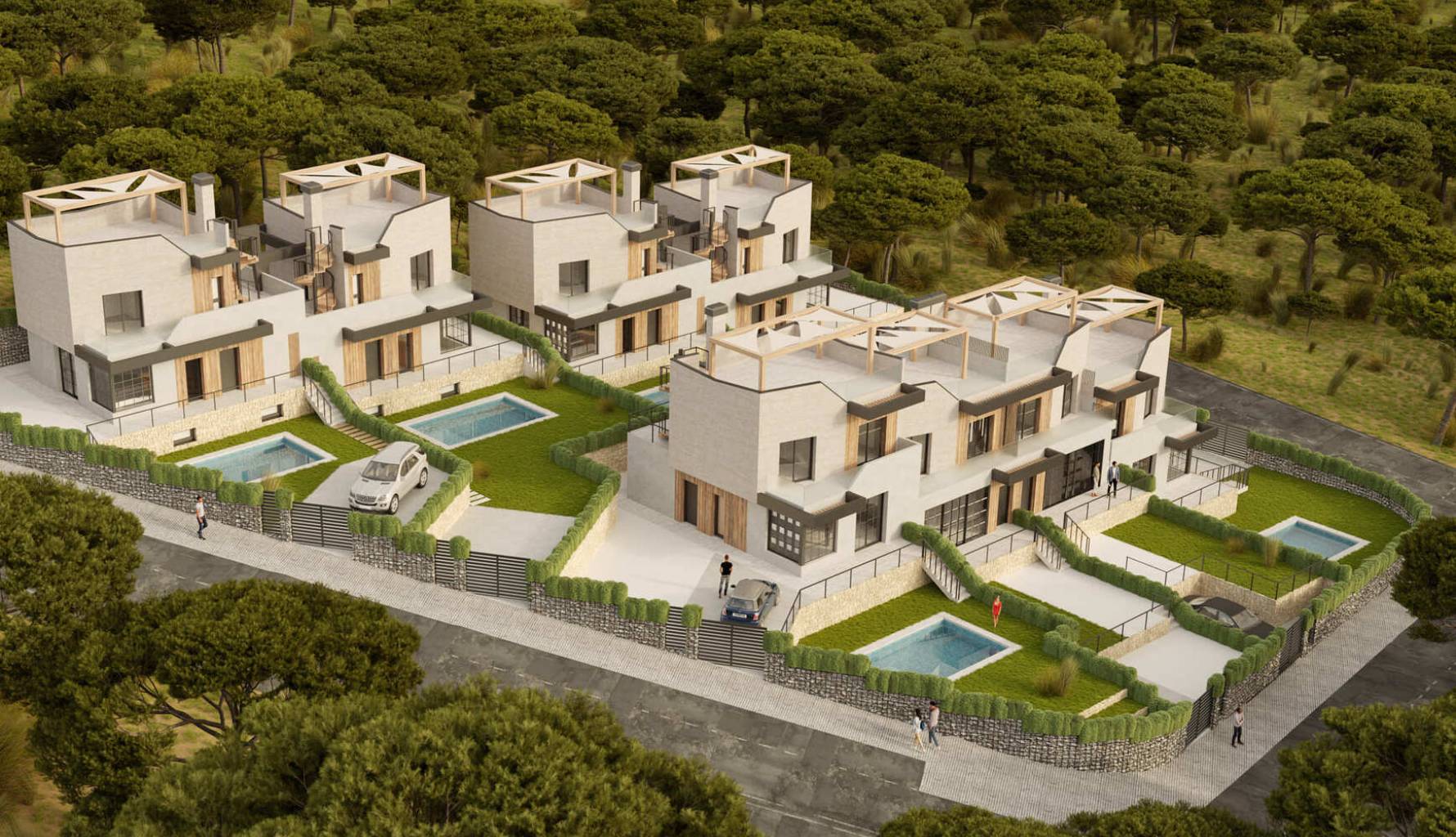 The interiors of the homes are designed with a focus on comfort and functionality. Ceramic floors add a modern touch and are easy to maintain. The properties include air conditioning, ensuring a pleasant environment year-round. Built-in wardrobes provide ample storage space, while the pre-installation of air conditioning offers flexibility for future upgrades. Kitchens are equipped with modern appliances, facilitating daily life.