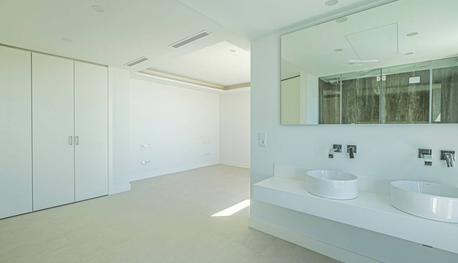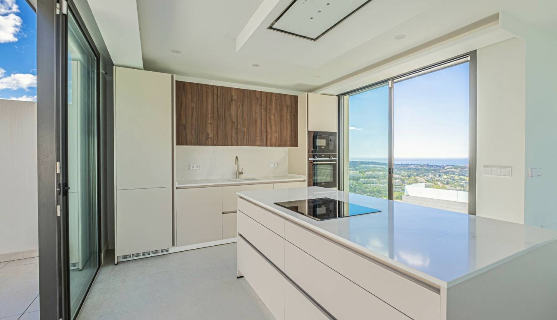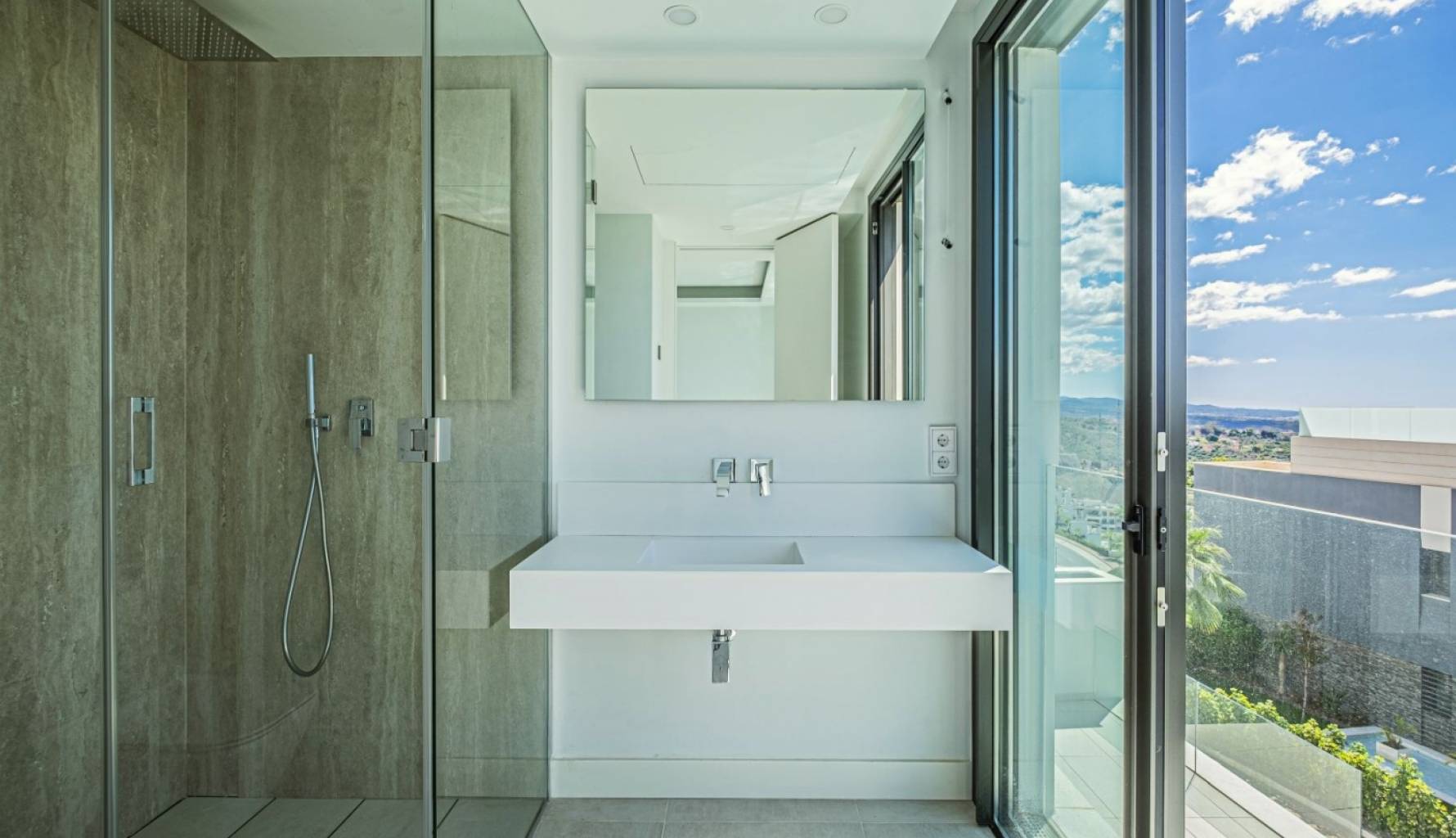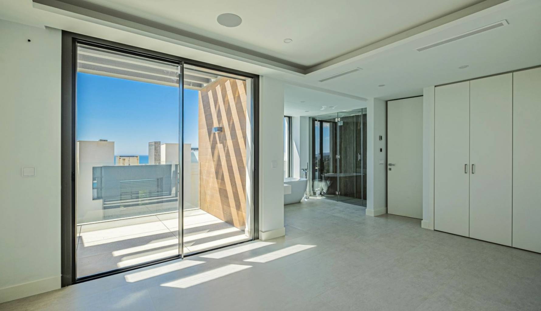 The interior of these villas in Benahavís is designed with a focus on comfort and modern technology. Each villa features three bedrooms and three bathrooms, ensuring ample space for family or guests. The porcelain tile flooring adds a touch of sophistication and durability. The villas are equipped with air conditioning and a home automation system that allows efficient control of various aspects of the home. Electric shutters and a video intercom add an additional level of comfort and security. High-quality appliances are included, and built-in wardrobes offer practical and stylish storage.