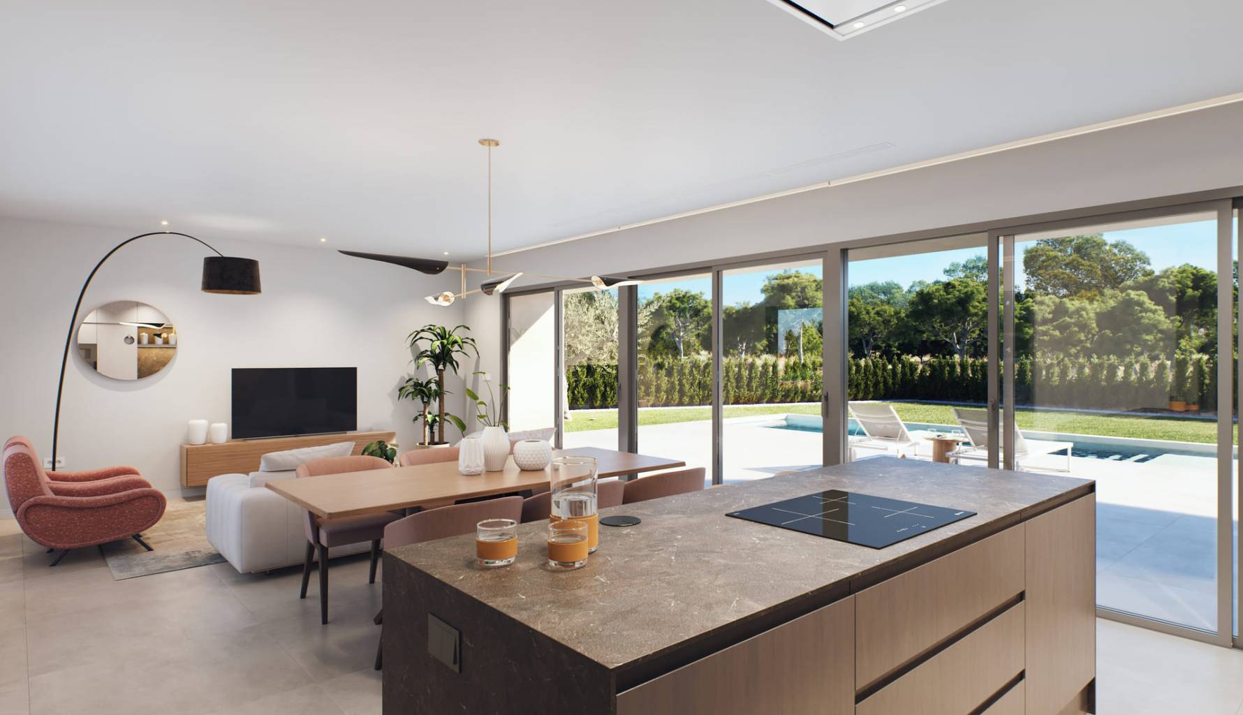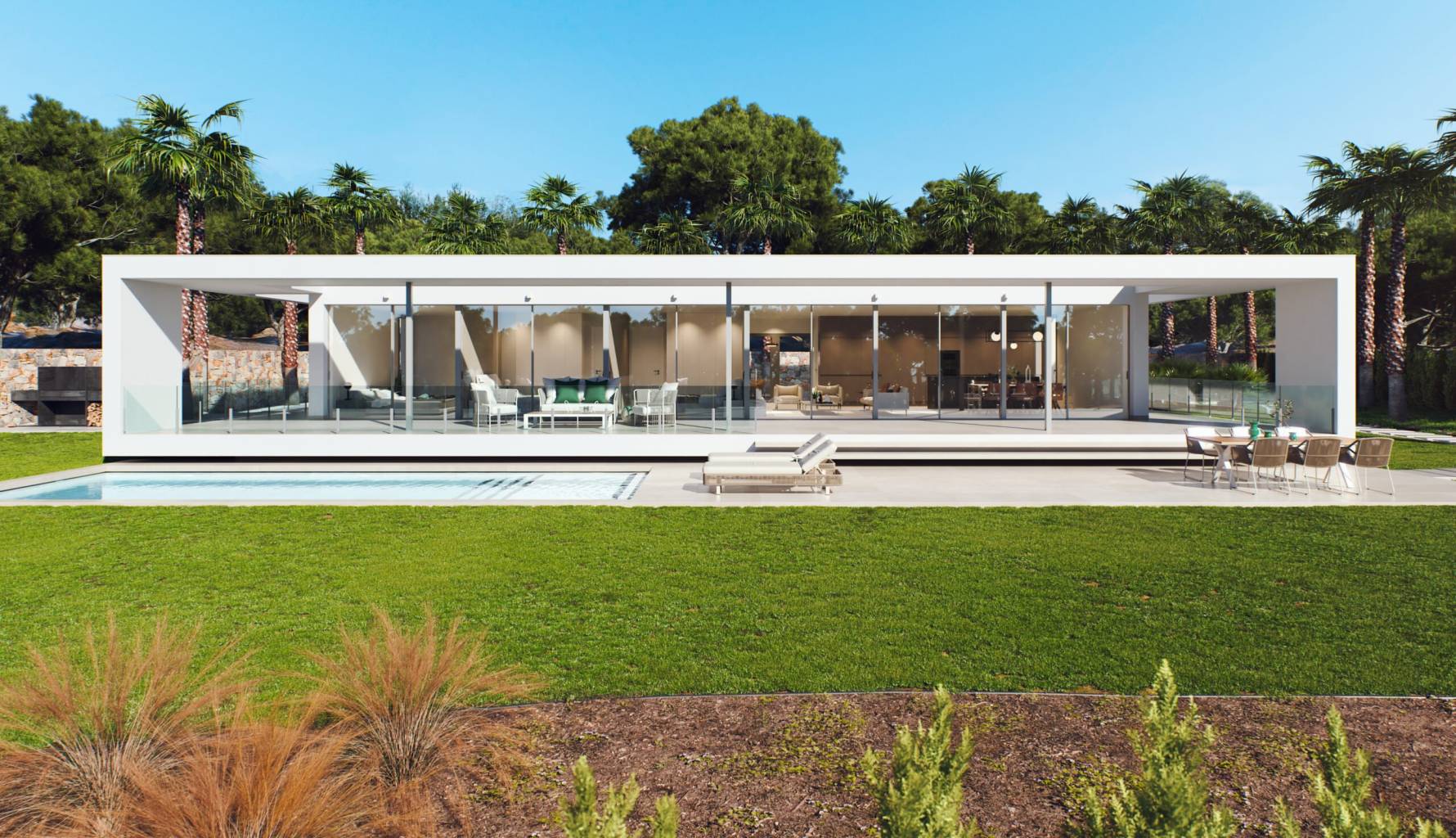 The properties feature outdoor spaces designed to maximize enjoyment of the Mediterranean climate. Each home has a private garden, perfect for creating a personal oasis of relaxation. Additionally, the terraces offer extra space to enjoy outdoor dining or simply relax at the end of the day. The inclusion of a private pool in each property adds a touch of luxury, allowing residents to enjoy a refreshing dip in the comfort of their home. These outdoor spaces are designed to offer privacy and comfort, becoming the perfect place to enjoy unforgettable moments with family and friends.