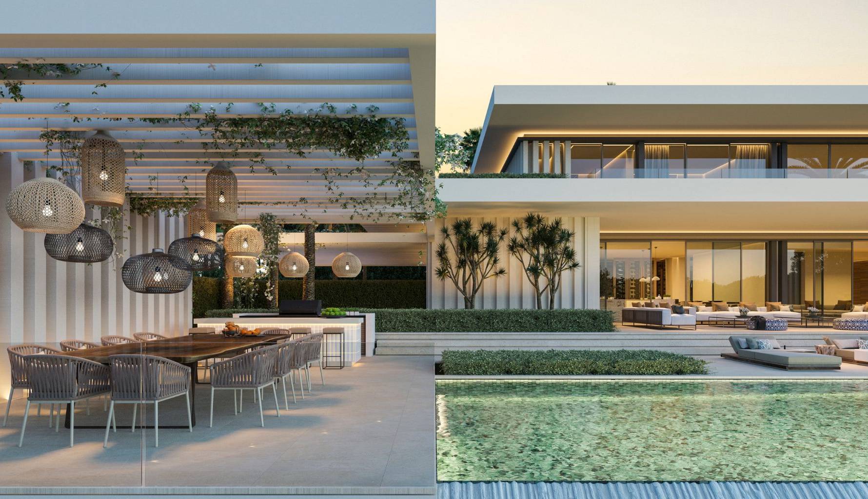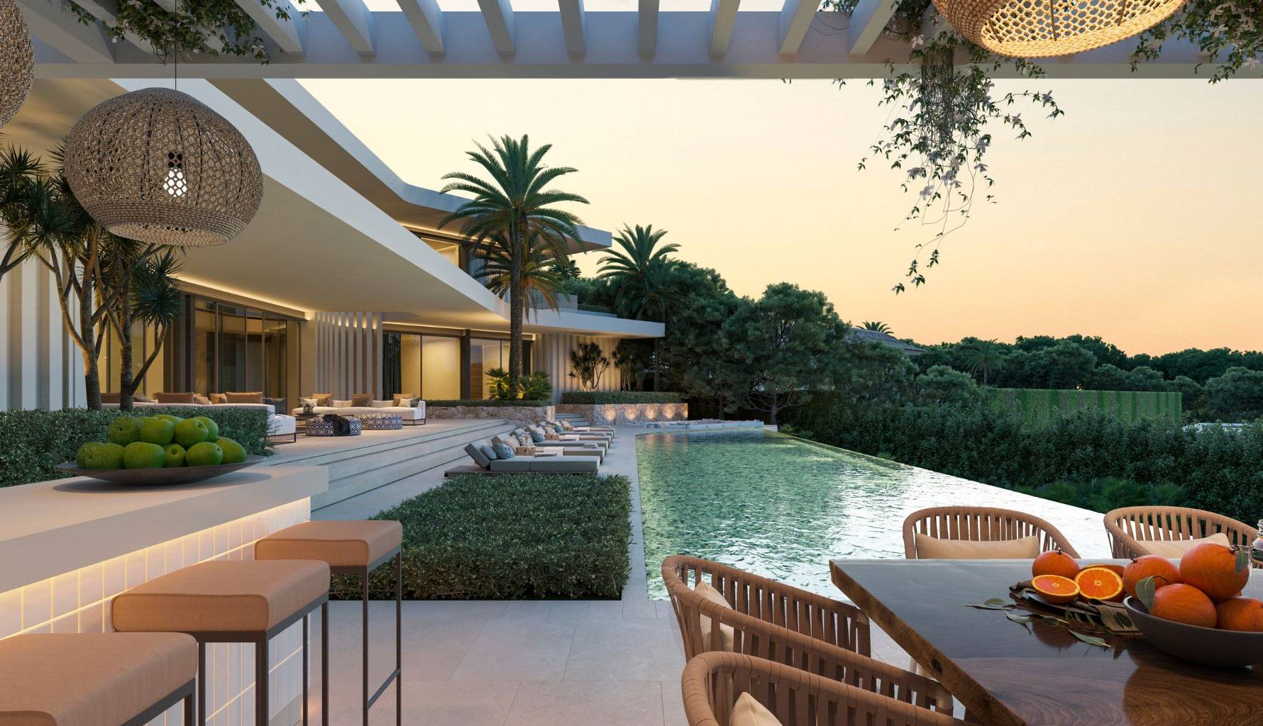 The exterior of the villa is designed to maximize enjoyment of the Mediterranean climate. The property features a spacious terrace, perfect for relaxing or entertaining guests while enjoying the sea views. Additionally, it has a private pool, ideal for cooling off during warm summer days. The exterior design combines elegance and functionality, creating a space that invites spending time outdoors. The proximity to the sea, just 4 km away, allows for beachside walks or water sports. Marbella's natural surroundings perfectly complement the villa's design, offering a tranquil and exclusive retreat.