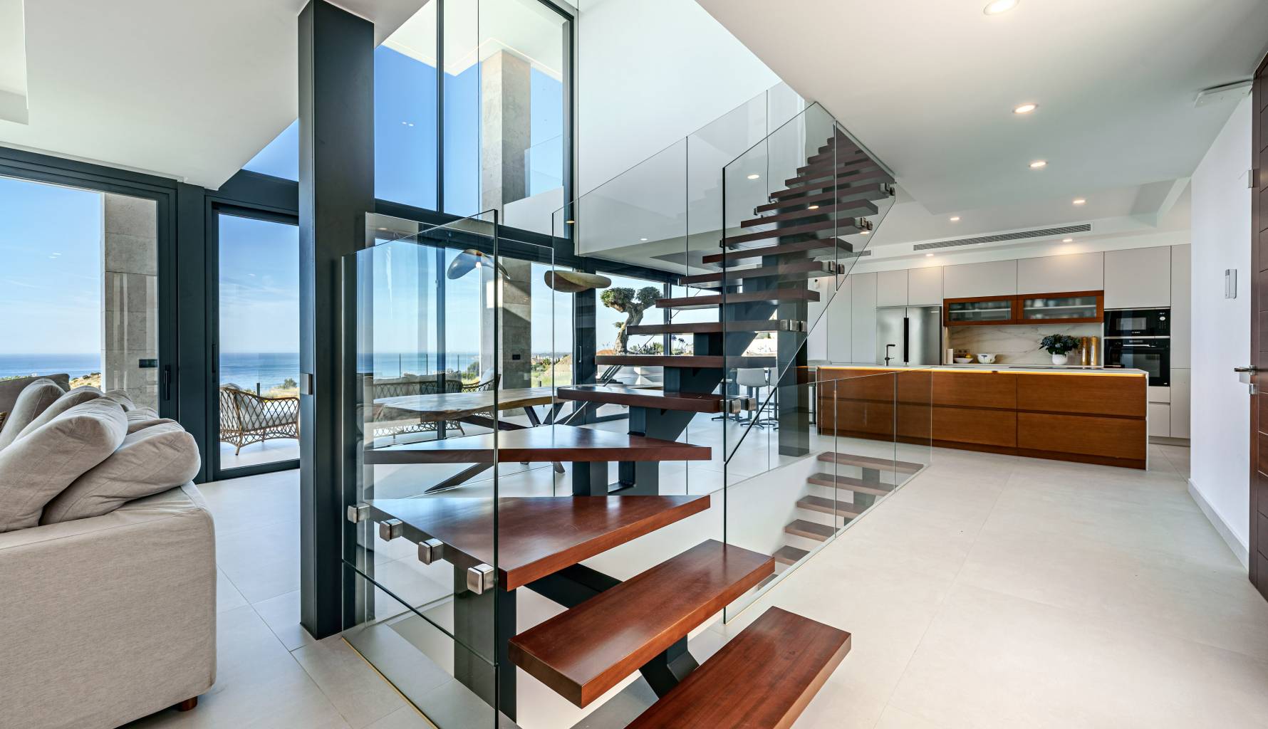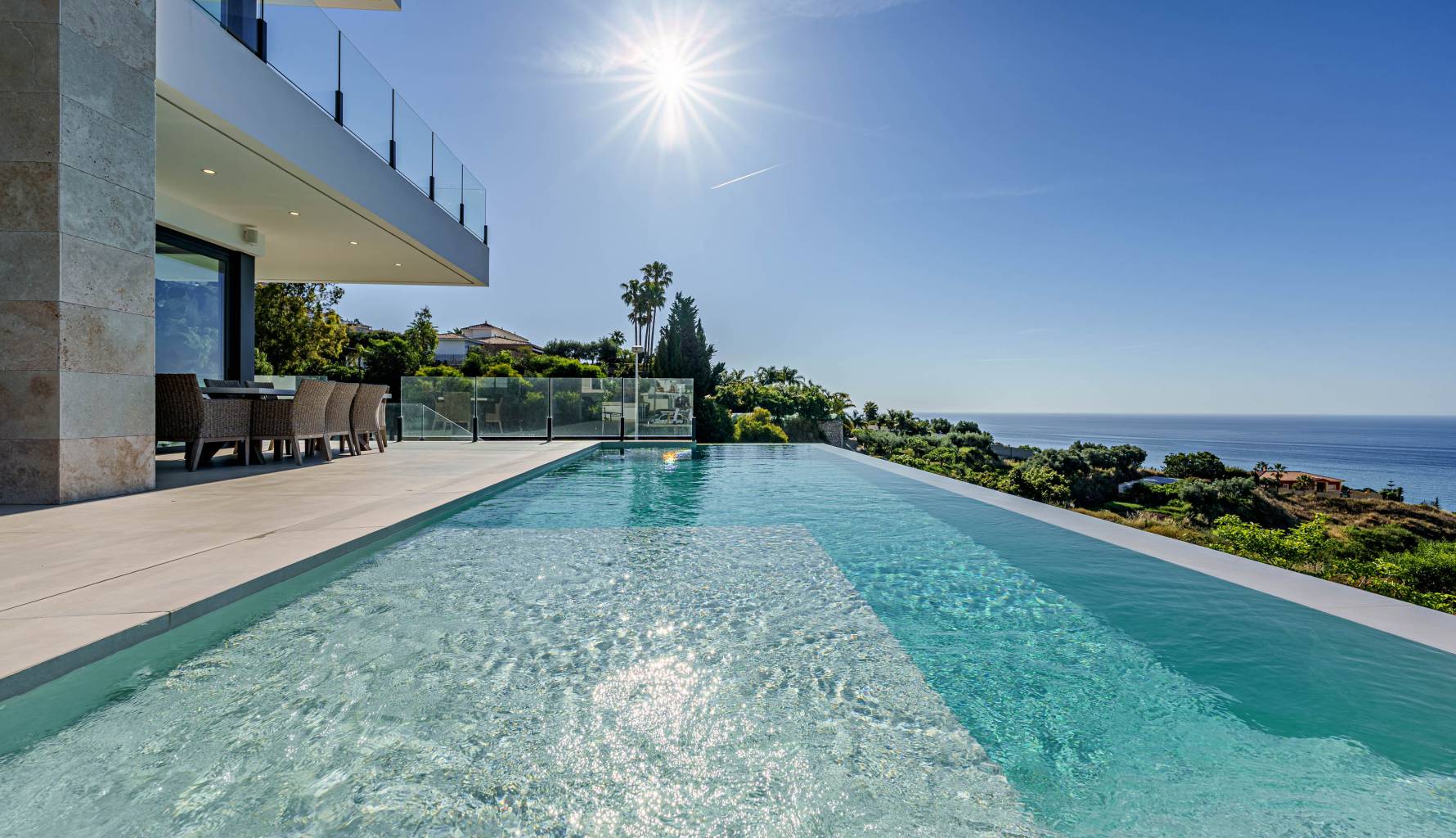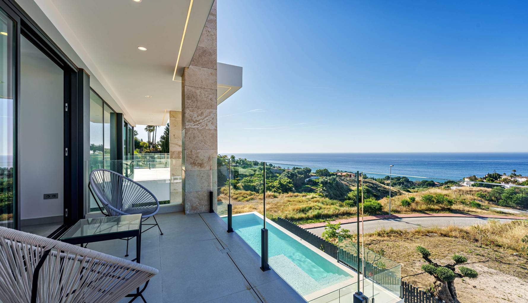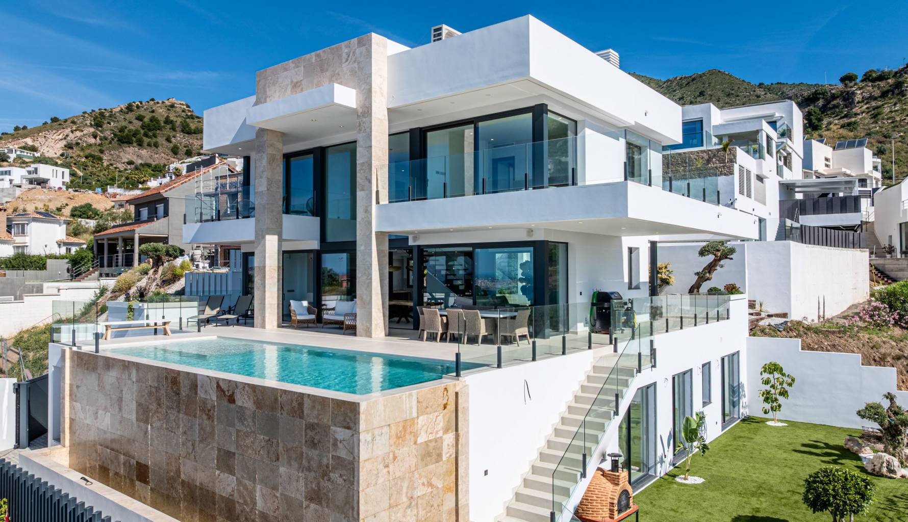 Located in the beautiful area of Benalmádena, this exclusive villa offers a unique living experience with sea views. Designed for those seeking a home that combines luxury and comfort, the property is just 2 km from the sea, allowing you to enjoy the sea breeze and stunning landscapes. Additionally, its proximity to the airport, 19 km away, facilitates international travel, making it an ideal choice for those who value connectivity and quick access to important services and destinations. The villa is carefully designed to offer maximum comfort, with a layout that includes four bedrooms and four bathrooms, ideal for families or those who enjoy hosting guests.