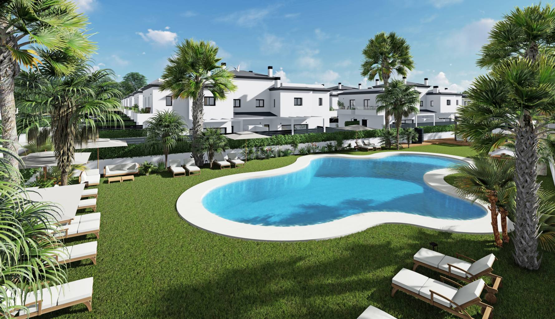 Located in the attractive area of Gran Alacant, this residential complex offers 24 homes that combine comfort and style. The typology options include semi-detached and terraced homes, catering to various family needs. The location is ideal for those seeking a balance between tranquility and accessibility, with the sea just 3 km away and the airport 9 km away, facilitating both leisure and commuting. The homes are designed to offer a cozy and functional environment, with a layout that maximizes space and natural light.