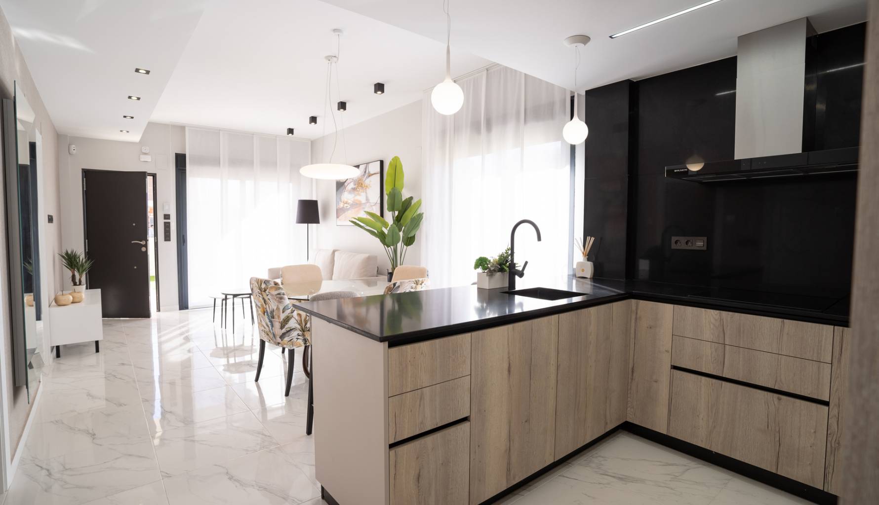 The exteriors of these homes have been carefully designed to maximize enjoyment of the Mediterranean climate. Each property features a private garden, perfect for relaxation or outdoor activities. Additionally, the terraces offer extra space to enjoy the views and surroundings. For those seeking extra outdoor space, the solarium is an ideal option, providing a private place to sunbathe or enjoy starry nights. Pergolas add a touch of elegance and functionality, providing shade and style to the outdoor spaces.