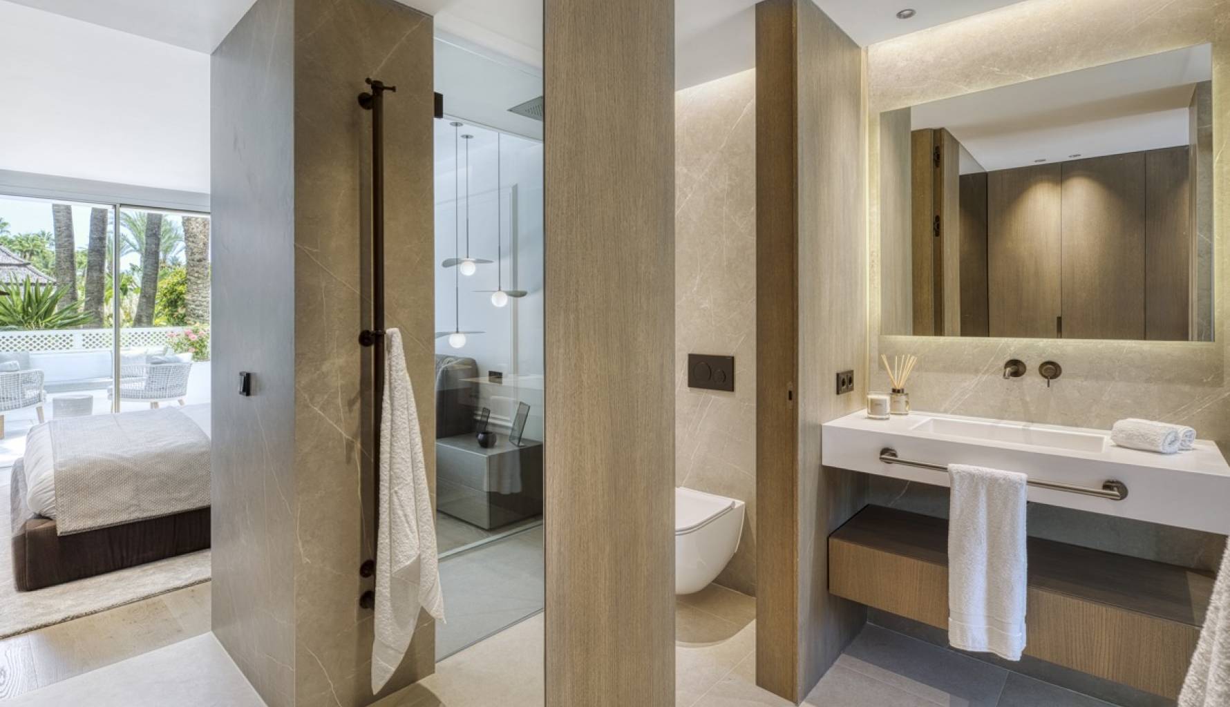 The outdoor setting of this ground floor in Marbella is designed to maximize enjoyment of the Mediterranean climate. The property features a spacious terrace, perfect for relaxing outdoors or enjoying al fresco dining with sea views. Additionally, direct access to garden areas provides extra green space for relaxation and tranquility. Proximity to the beach, just one kilometer away, offers the opportunity for morning walks by the sea or a refreshing swim at any time of the day.
