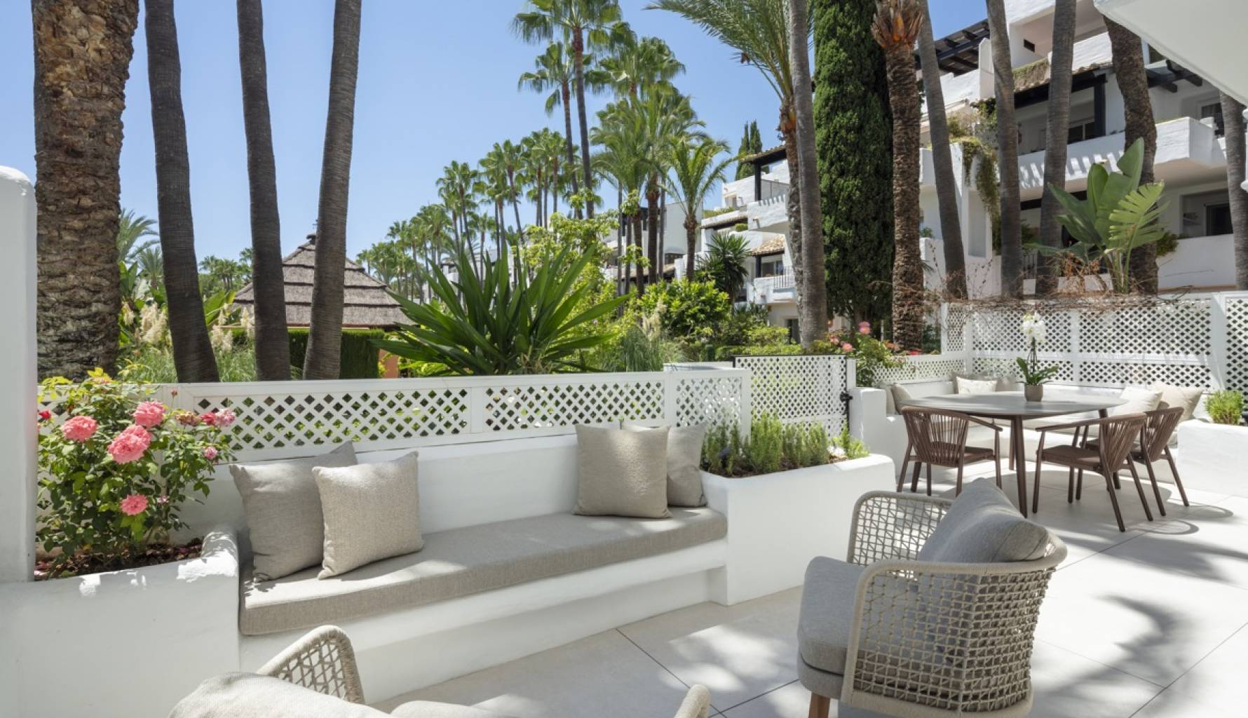 The interior of this ground floor in Marbella is carefully designed to offer maximum comfort and functionality. With three bedrooms and three bathrooms, the layout is ideal for families or those who enjoy hosting guests. The property is fully furnished, making moving in easy and allowing immediate enjoyment of all its amenities. Wooden floors add warmth and elegance, while electric shutters and air conditioning ensure a comfortable environment year-round. The kitchen is equipped with modern appliances, and built-in wardrobes offer ample storage space. Additionally, the property includes a garage, providing security and convenience for parking.