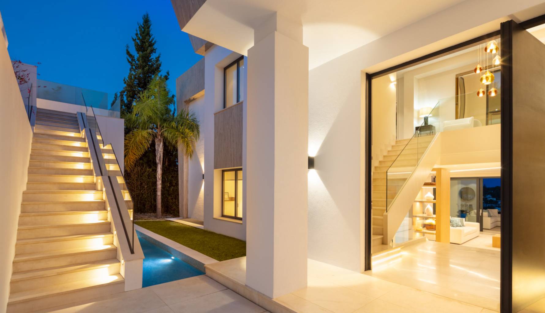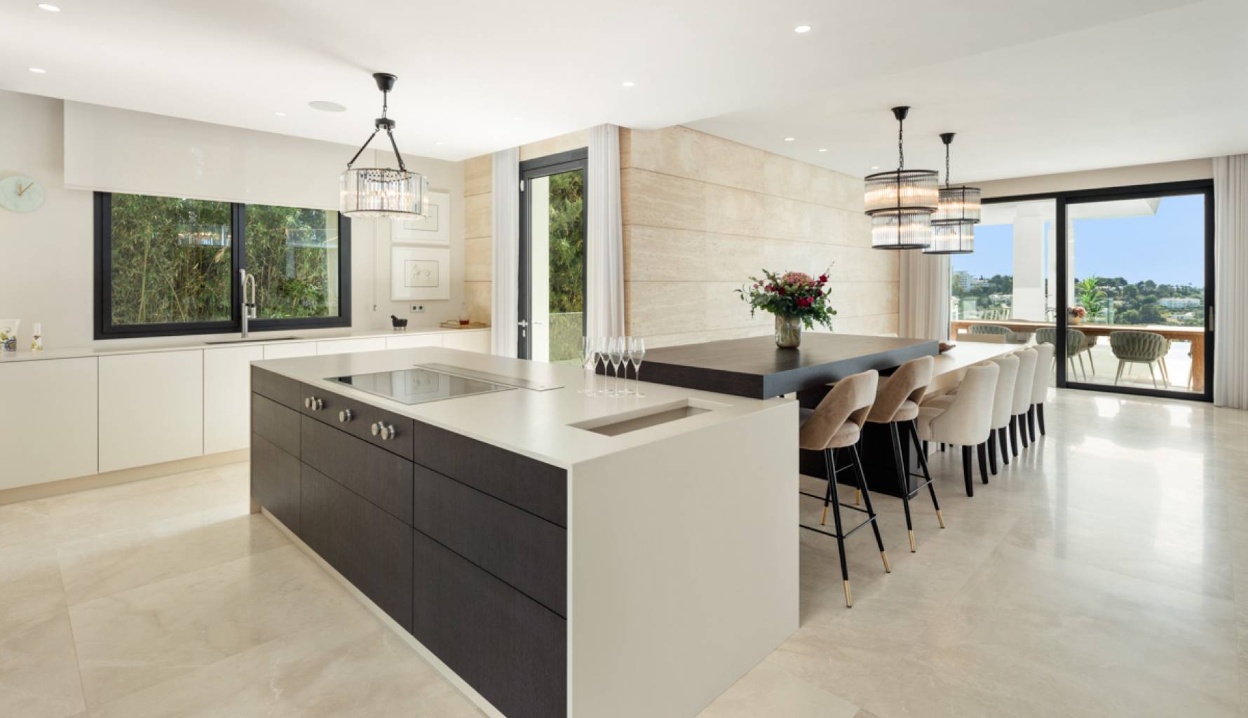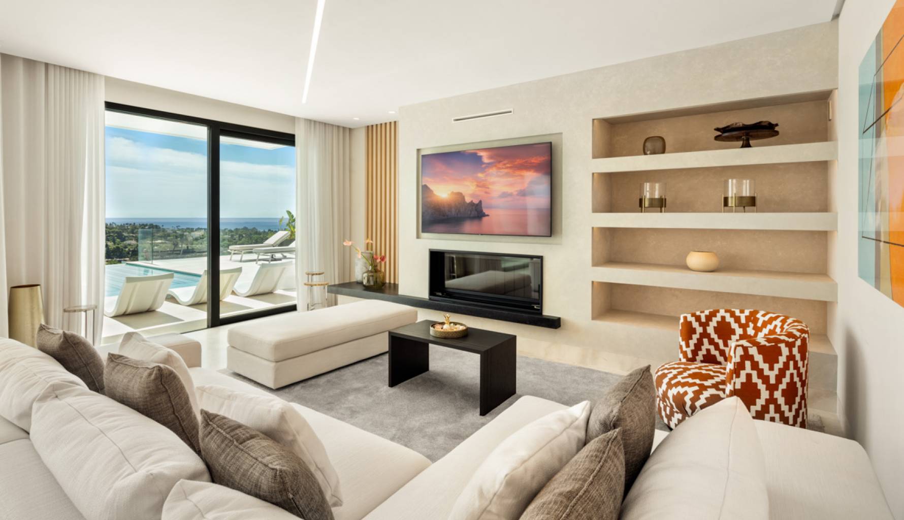 The interior of the villa is equipped with all modern comforts. It has air conditioning to ensure comfort throughout the year. High-end appliances are included, making daily life easier. Built-in wardrobes offer ample storage space, keeping the home organized and clutter-free. The layout includes a garage, ensuring a secure space for vehicles. Additionally, the villa features a private spa, providing a haven of wellness and relaxation.