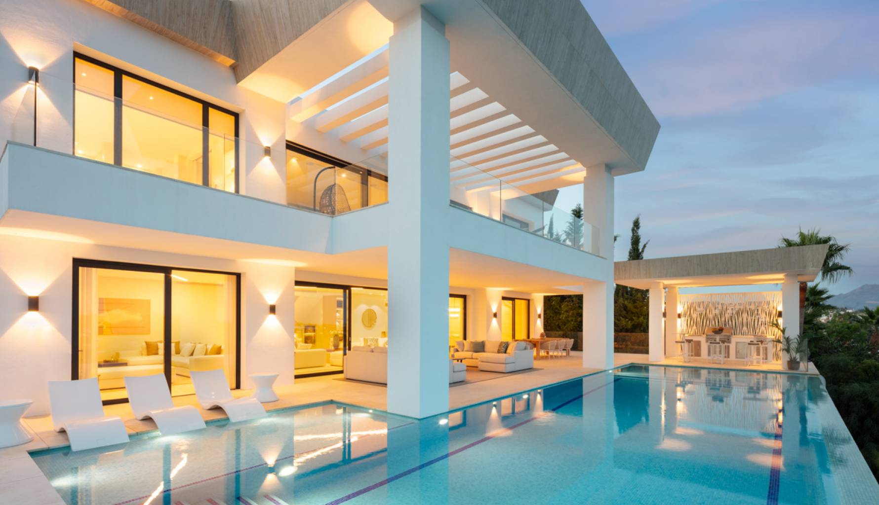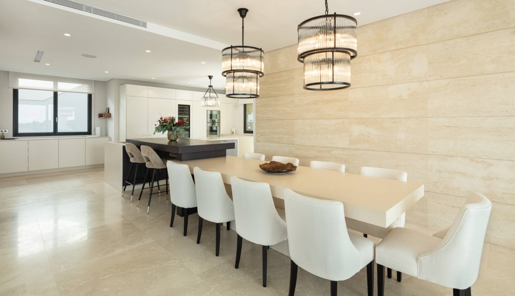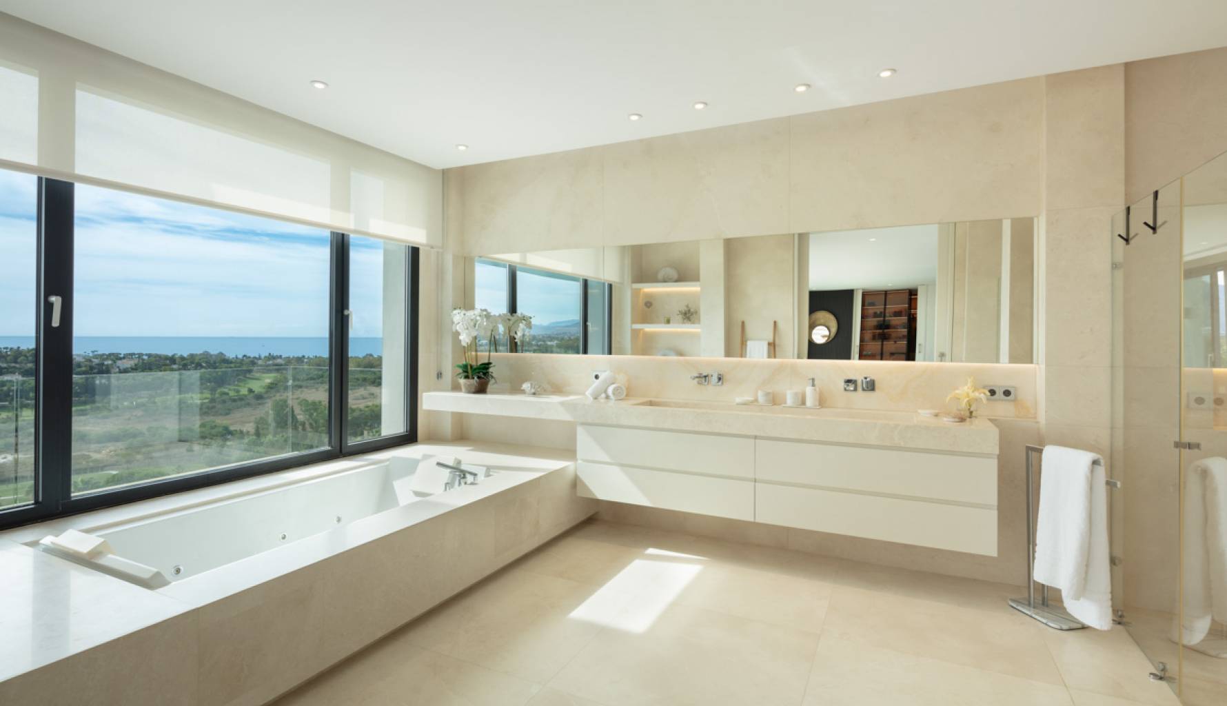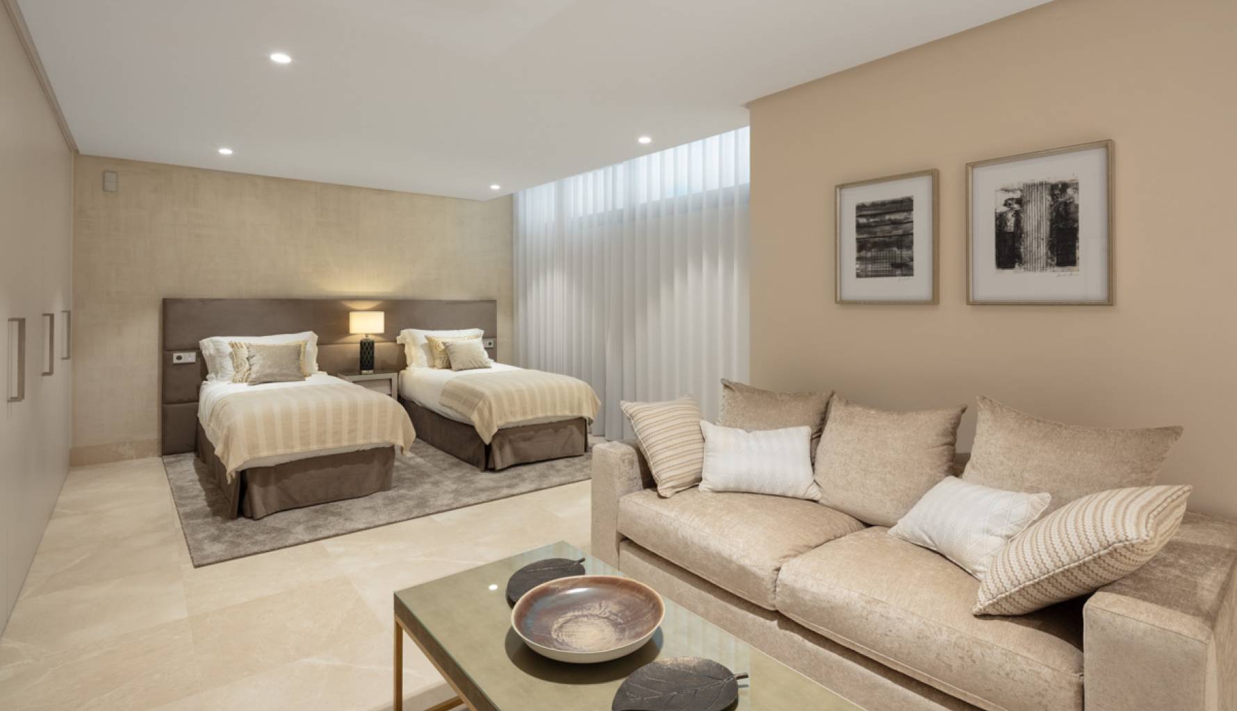The interior of the villa is equipped with all modern comforts. It has air conditioning to ensure comfort throughout the year. High-end appliances are included, making daily life easier. Built-in wardrobes offer ample storage space, keeping the home organized and clutter-free. The layout includes a garage, ensuring a secure space for vehicles. Additionally, the villa features a private spa, providing a haven of wellness and relaxation.