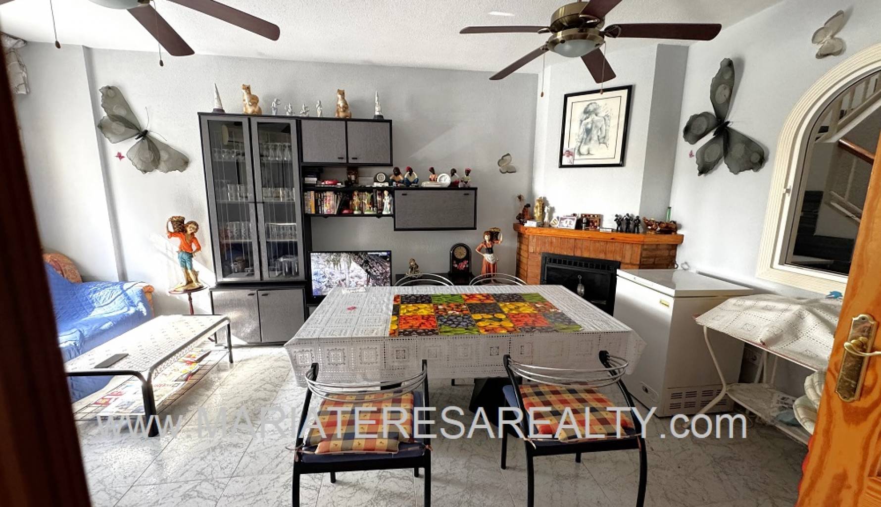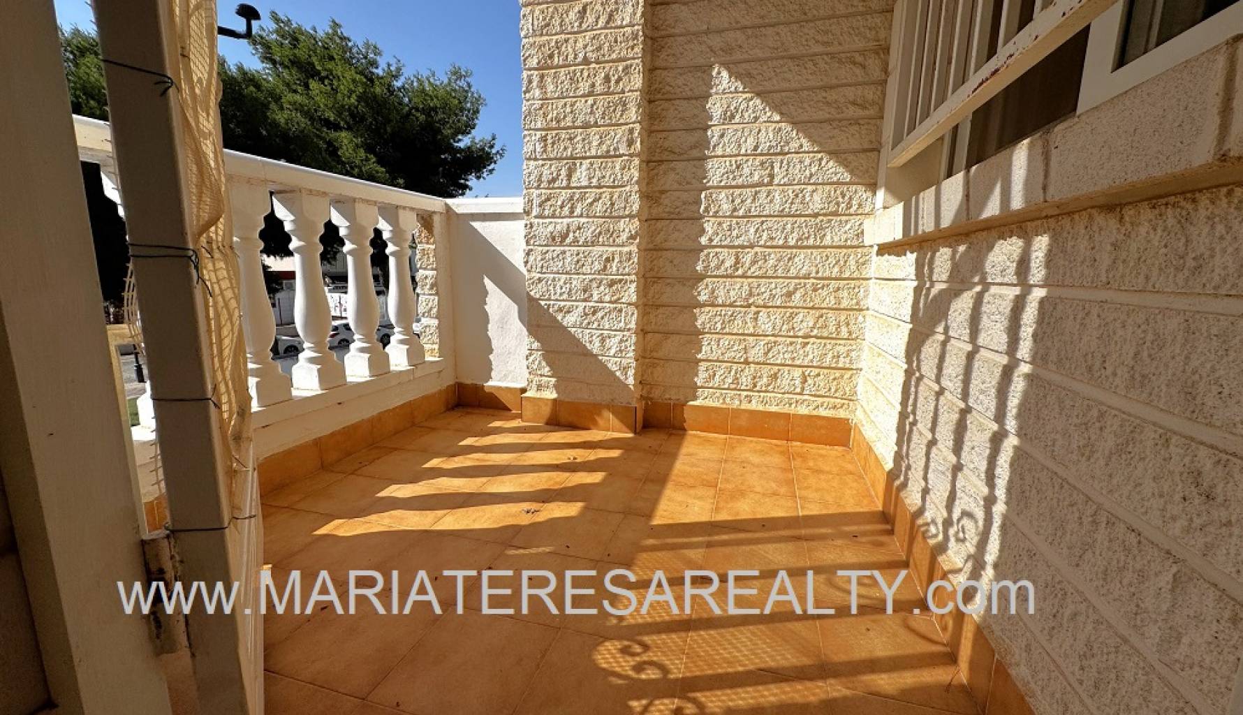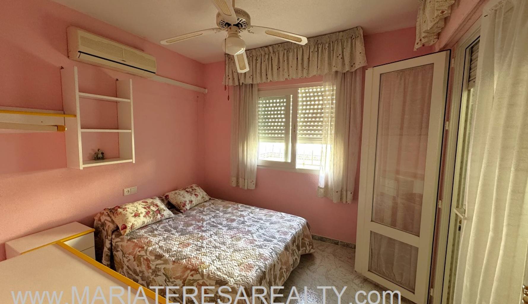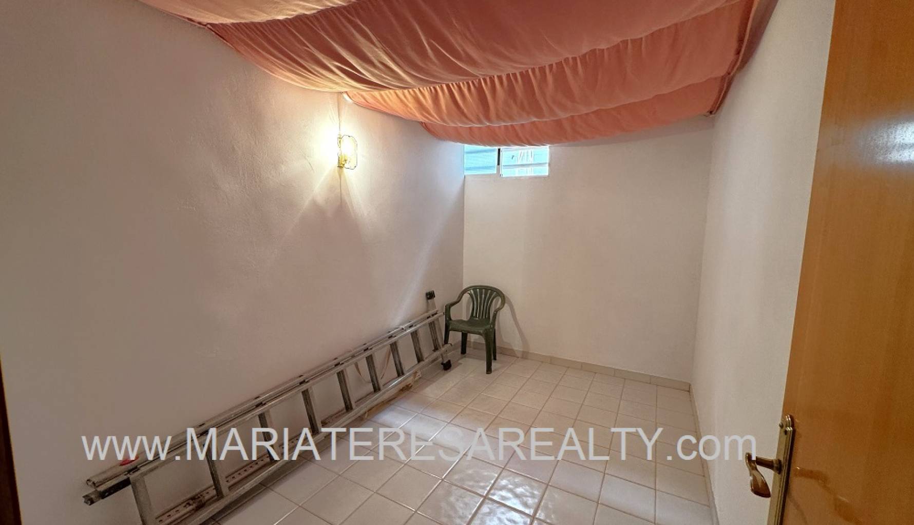 Beautiful 4-bedroom semi-detached house in very good condition, close to the municipal swimming pool and the library in Los Alcázares. The house has a large terrace with a porch with awnings. Upon entering, we find a hall that divides the rooms of the house. On the ground floor, we have a large independent living room equipped with air conditioning, a bedroom without a built-in wardrobe, a toilet, and a large, fully equipped kitchen that leads to a separate laundry area that in turn leads to a large backyard where we have a built-in outdoor shower. Going down the stairs, we find a large basement with an exterior entrance, completely separate from the main house, where we have a bathroom with a shower and two large bedrooms without built-in wardrobes. On the upper floor of this semi-detached house, we have a master bedroom with a built-in wardrobe and access to a balcony, a bedroom with air conditioning and without a built-in wardrobe that opens onto a covered terrace that in turn leads to a large terrace, a bathroom equipped with a bathtub, and a bedroom with a built-in wardrobe