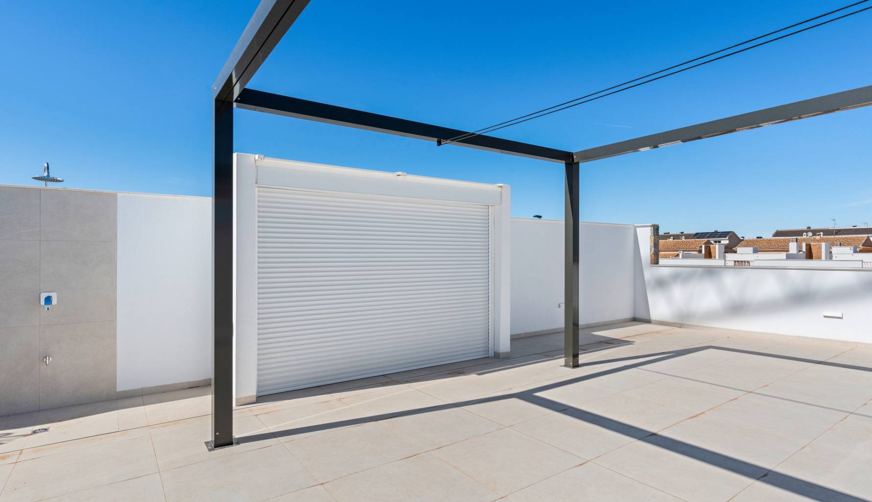 The exteriors of these properties are designed to maximize enjoyment of the Mediterranean climate. Each bungalow features a private garden, perfect for creating a personal green space or enjoying outdoor moments. The spacious terraces offer an ideal place to relax or share with friends and family, while the solarium provides additional space for sunbathing or enjoying the views. The community also features common garden areas, adding a touch of nature and freshness to the environment.