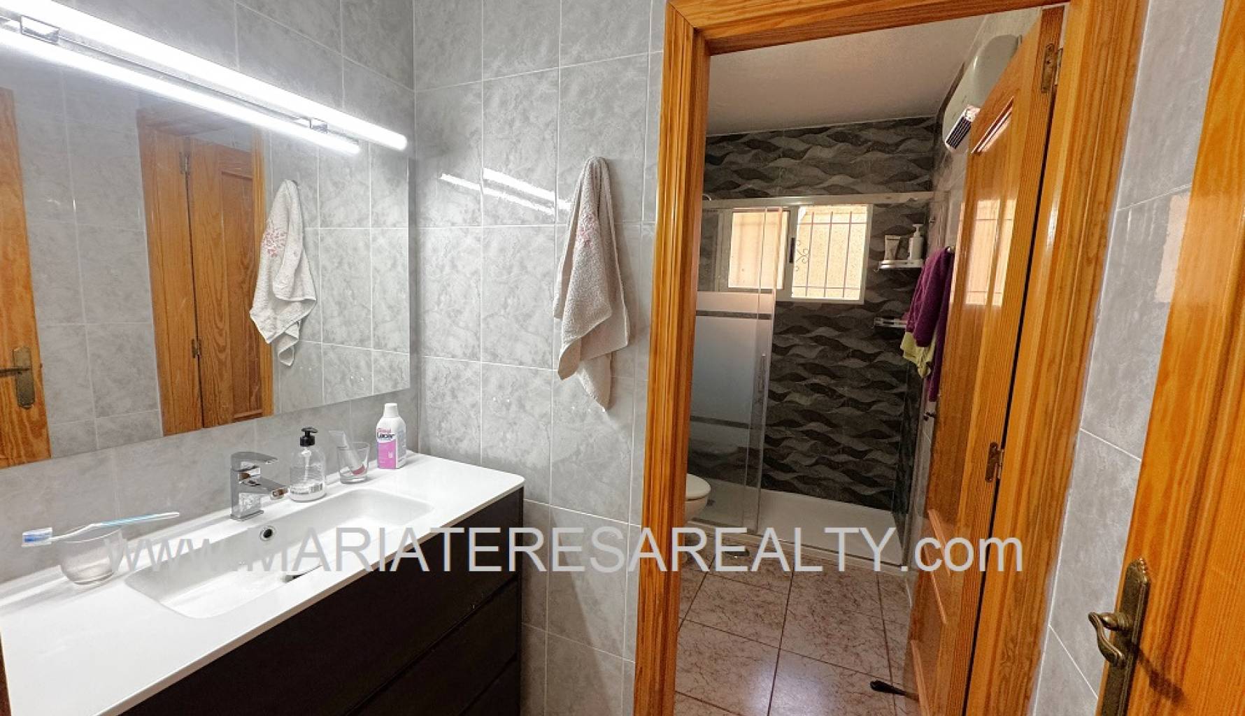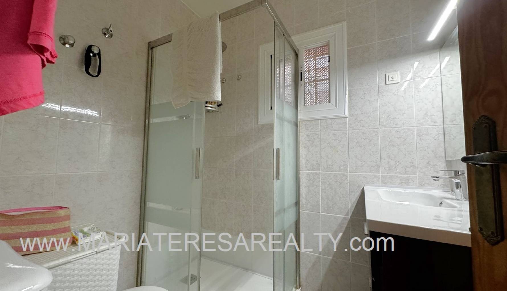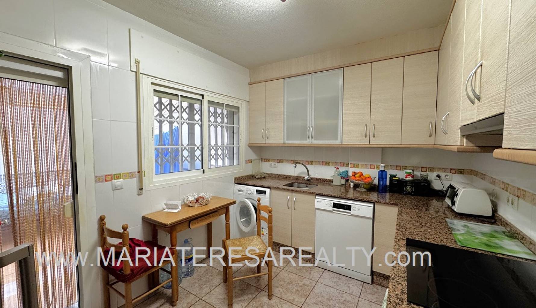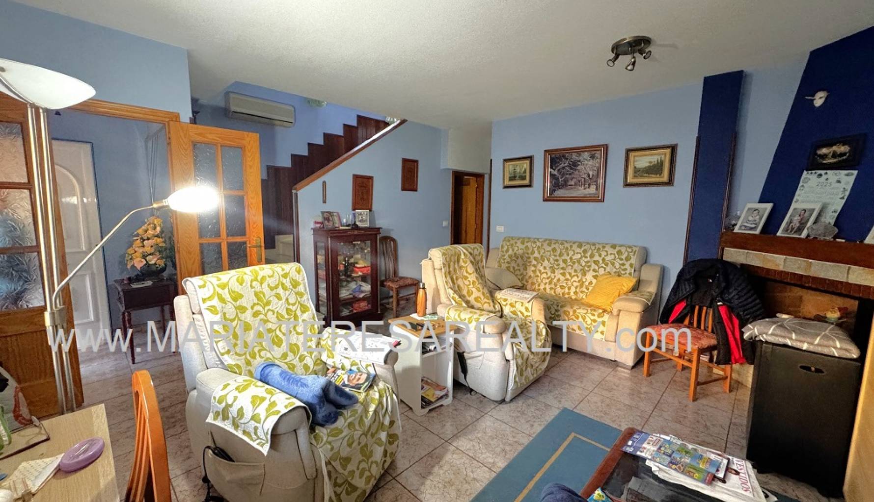 Wonderful duplex with a spacious 90m2 garden with awnings and a 28m2 garage. On the ground floor, which comprises 53m2, there is a small entrance hall separating the entrance from the living room. A spacious living/dining room with a decorative fireplace leads to a small pantry under the stairs, a bathroom with a shower, and a fully equipped independent kitchen with access to a large back patio with a built-in barbecue and awnings. The patio connects directly to the garage, which in turn has stairs leading to a 28m2 attic with a balcony and a working fireplace. The upper floor of this duplex has a constructed area of 67m2 and consists of four spacious bedrooms with built-in wardrobes and a bathroom with a shower. Two of the bedrooms, as well as the living room and the hallway leading to the bedrooms, are equipped with air conditioning. This house has security bars, double-glazed windows, mosquito nets on the windows and on the doors leading into the house and out to the patio.