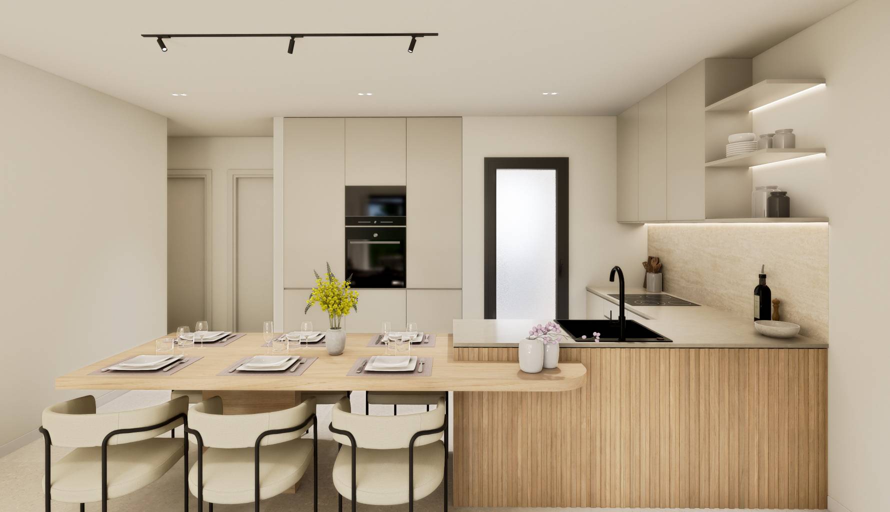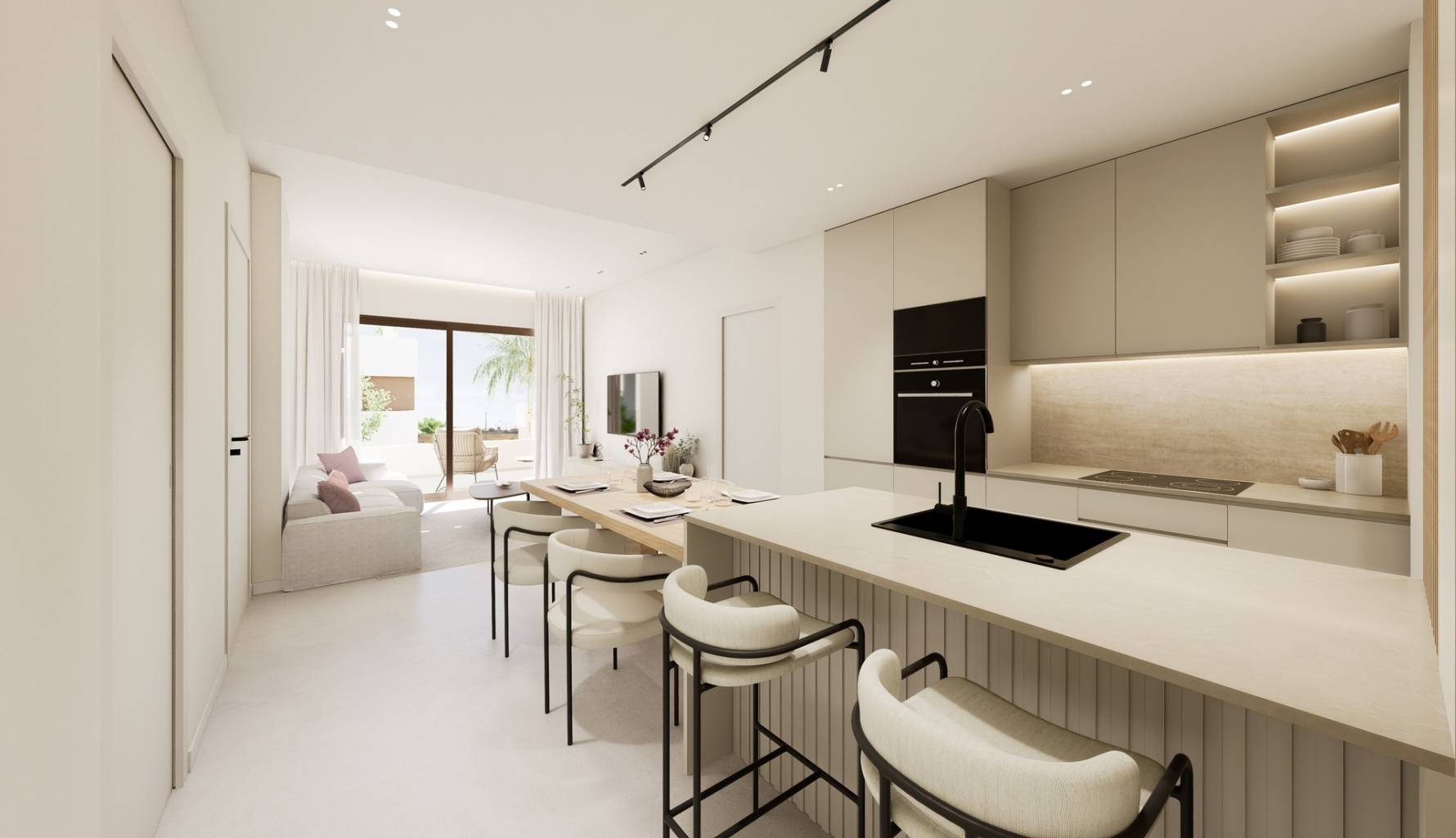 The exteriors of these bungalows are designed to maximize enjoyment of the Mediterranean climate. Each property features a private garden, perfect for creating a personal green space or enjoying outdoor moments. Additionally, the terraces offer an ideal place to relax, sunbathe, or share outdoor meals with family and friends. The inclusion of a solarium provides additional space to enjoy panoramic views and the sun year-round. These outdoor elements are designed to complement the outdoor lifestyle characteristic of the region.