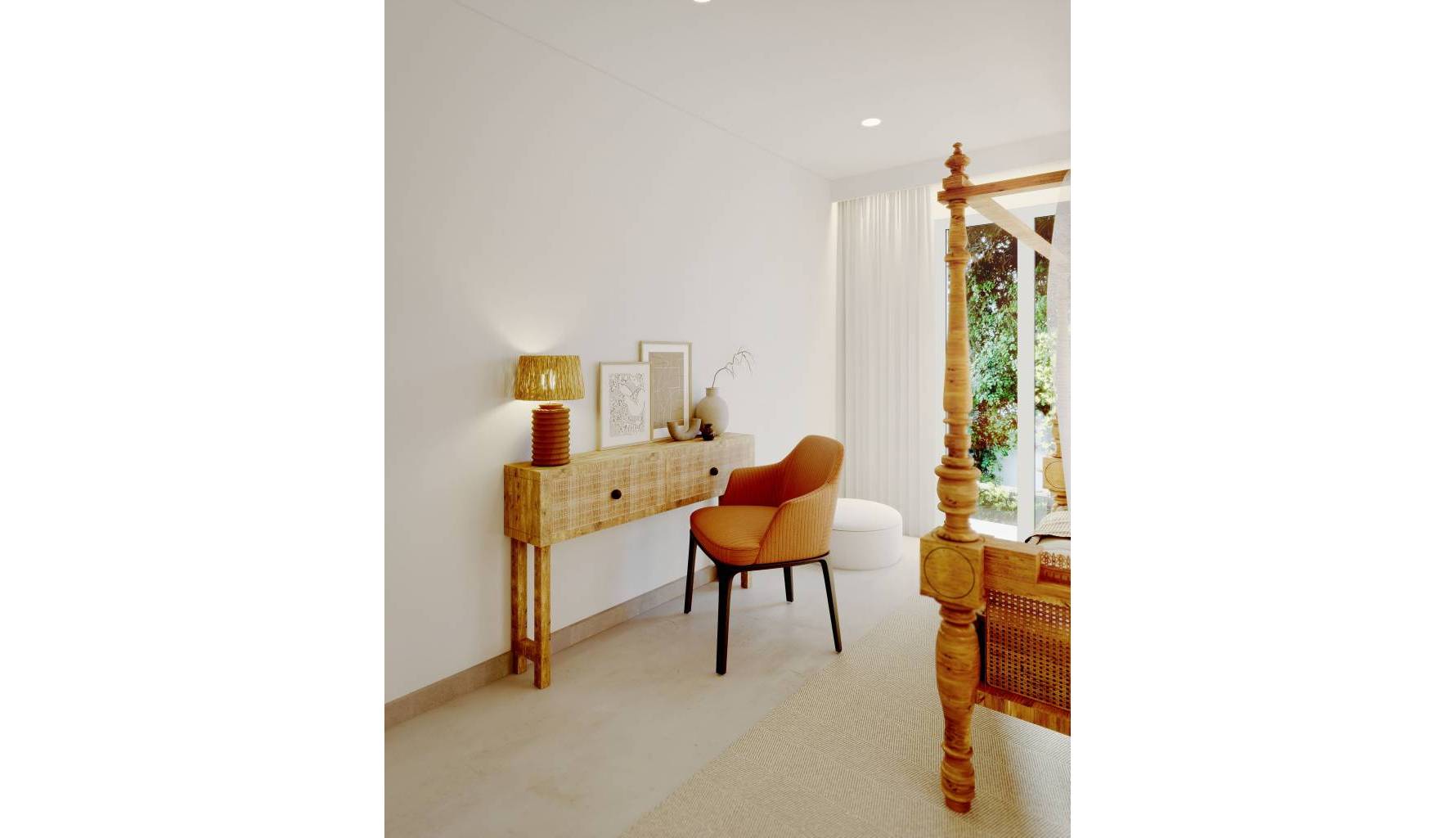 The interior of the townhouses is carefully designed to offer a functional and elegant space. With three bedrooms and two bathrooms, each home is equipped with air conditioning and built-in wardrobes, ensuring comfort and organization. Modern technology is integrated through a home automation system and video intercom, providing security and efficiency. The inclusion of a private pool in each townhouse adds a touch of luxury, allowing for a refreshing swim in the privacy of your home.