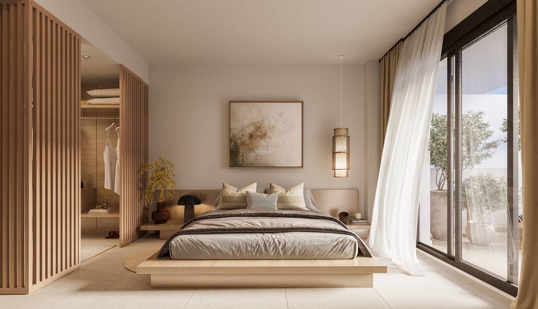 The properties feature outdoor spaces that invite relaxation and enjoyment of the natural surroundings. Each residence has a terrace, ideal for contemplating sea views and enjoying the Mediterranean climate. Additionally, some typologies include a private garden and solarium, offering additional space for outdoor leisure. The location in Macenas allows privileged access to the coast, enhancing the experience of living on the seafront.