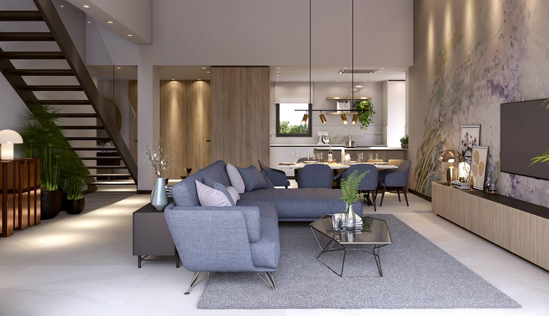 The interior of these villas at La Finca Golf is designed to offer maximum comfort and functionality. Each villa features air conditioning, ensuring a pleasant environment year-round. Electric shutters add an additional level of convenience and security. The built-in wardrobes in the bedrooms provide ample storage space, keeping the design clean and tidy. The layout includes a private garage, ensuring a secure parking space. Additionally, the solarium offers extra space to enjoy the sun and panoramic views of the surroundings.