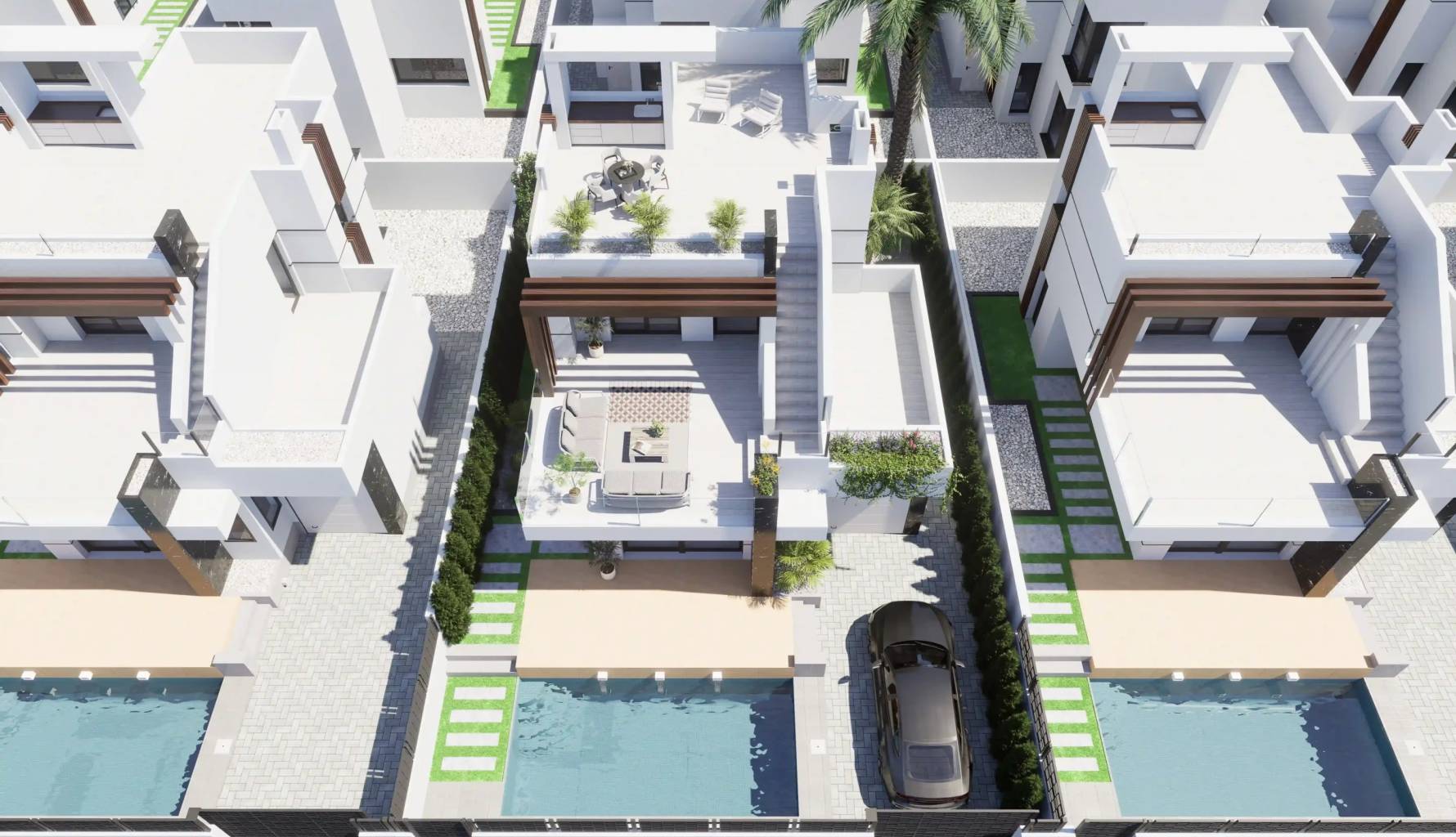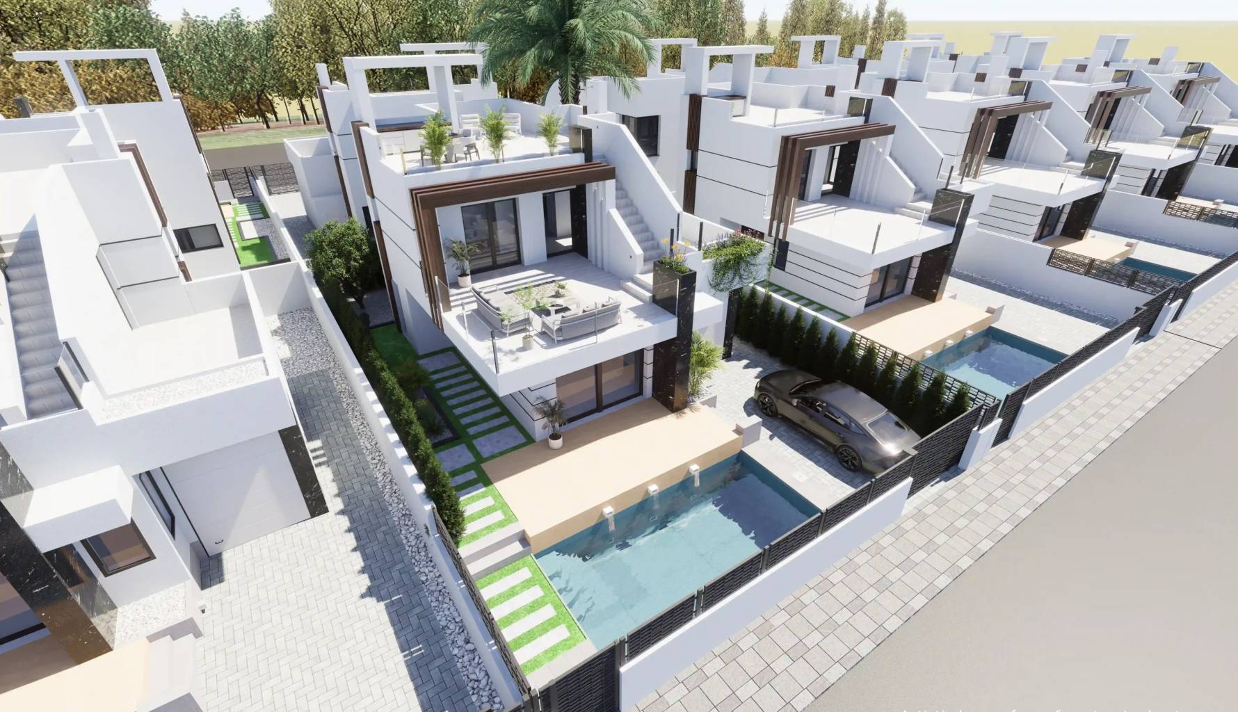 Located in the charming town of Los Alcázares, this exclusive collection of 8 detached homes offers an ideal setting for those seeking tranquility and comfort. With a distance of only 3 km to the sea, these properties allow you to enjoy the sea breeze and a relaxed atmosphere. Additionally, their proximity to the airport, 40 km away, facilitates access and mobility, making them a perfect choice for both permanent residence and holiday getaways.