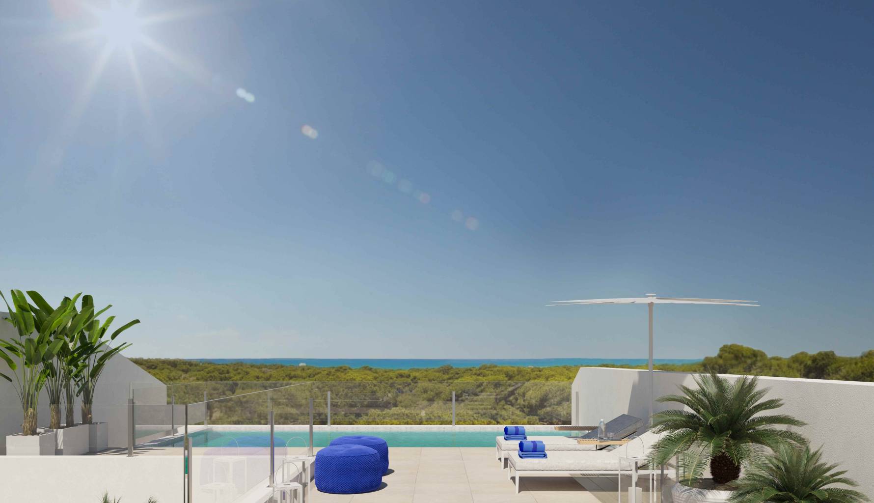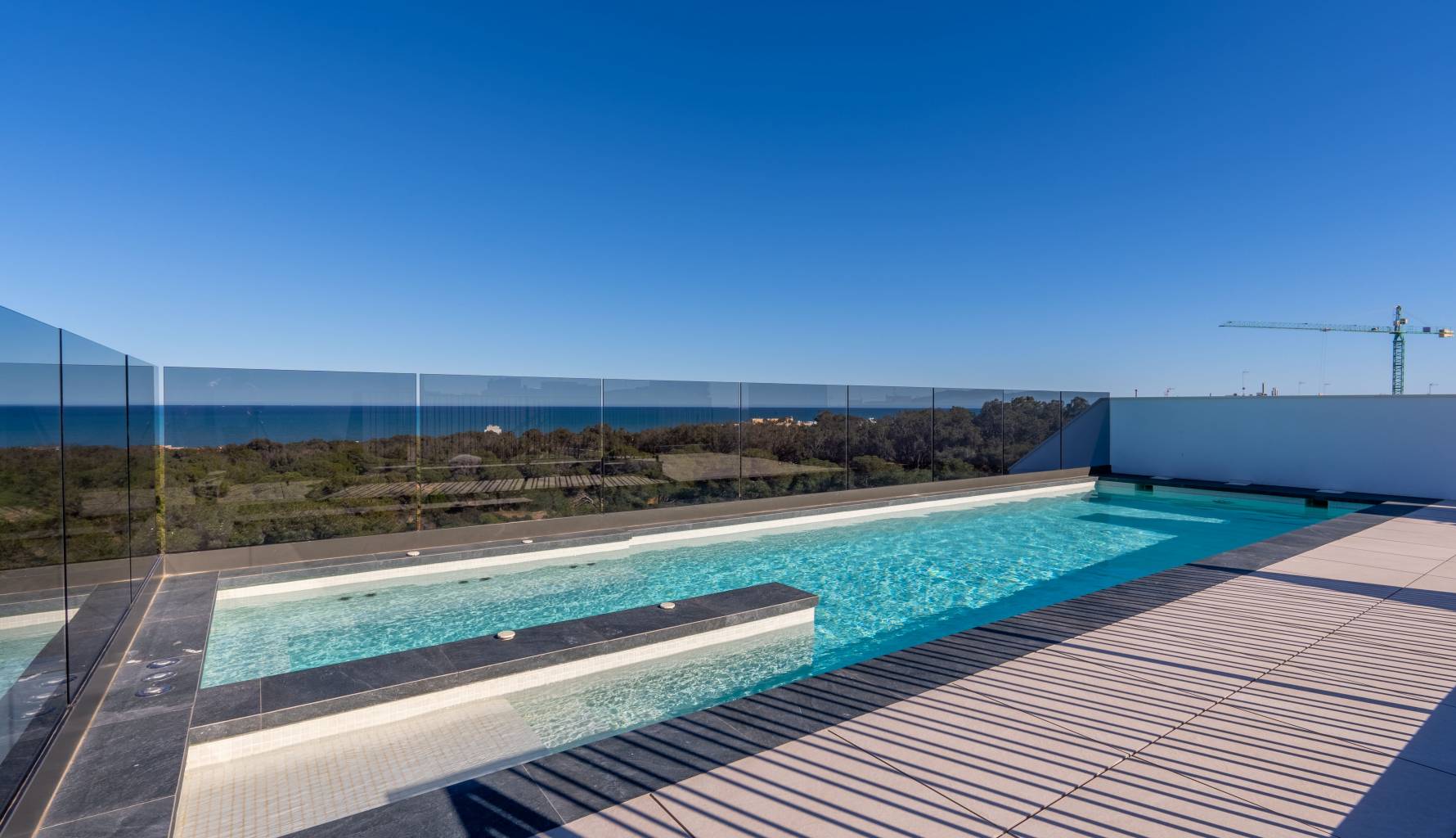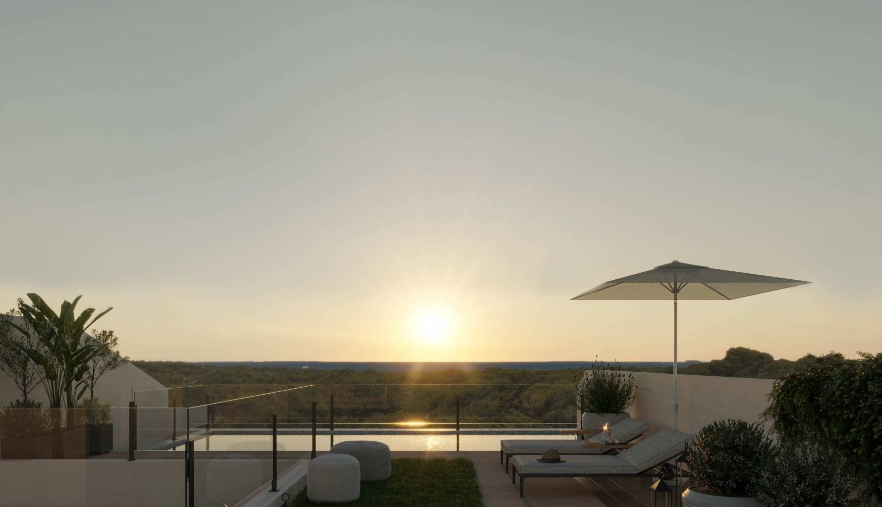 The exteriors of these homes are designed to maximize enjoyment of the Mediterranean climate. All properties feature terraces, perfect for relaxing while admiring the sea. Additionally, the residential complex offers a communal solarium, ideal for sunbathing and enjoying panoramic views. The proximity to the sea, just 700 meters, allows for beach enjoyment at any time.