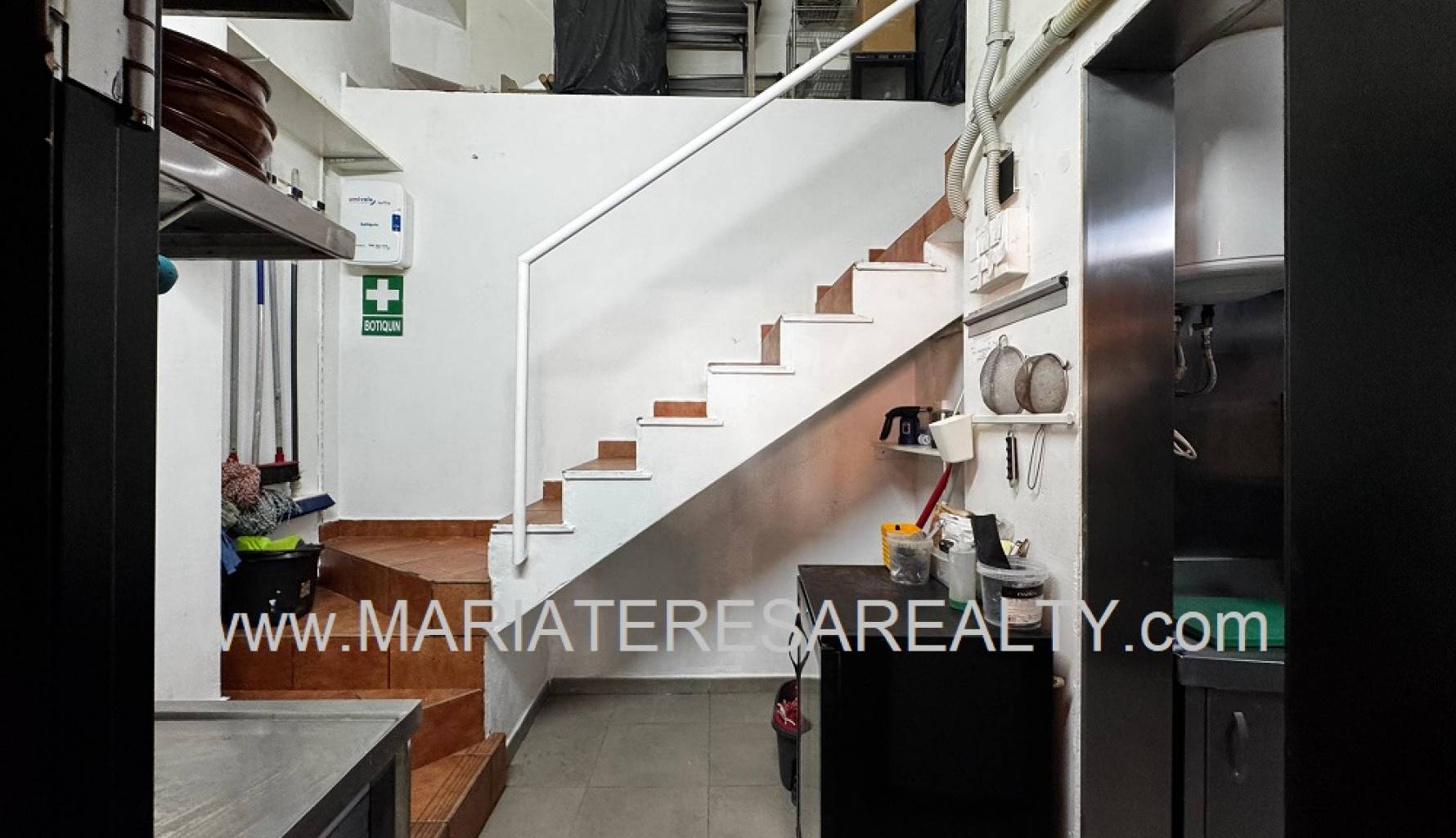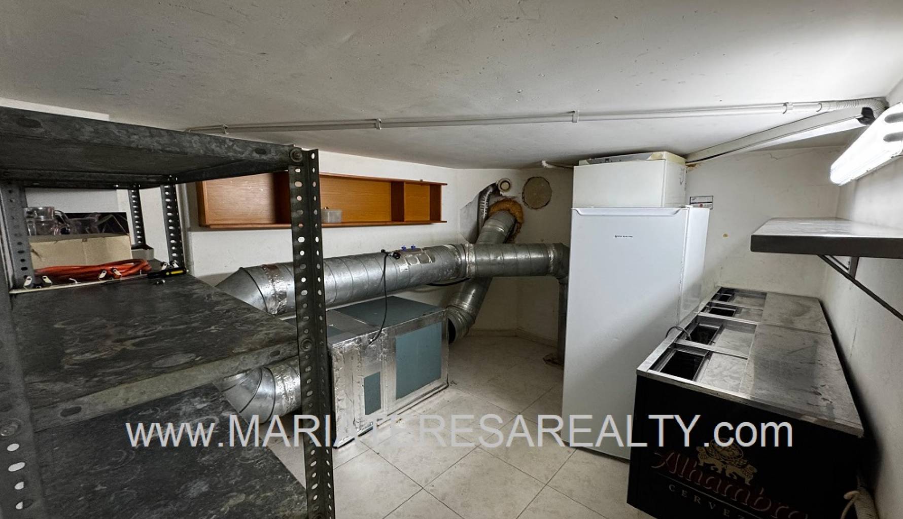 Fantastic premises on the Los Narejos shopping promenade near Plaza 525. This space is ideal for immediate occupancy as it comes fully equipped. It features a ramped entrance accessible to people with disabilities, a spacious main room furnished with several tables and armchairs, a large central bar with a coffee machine, beer, cider, and cava taps, a hanging glass rack, several refrigerated display cases, and a glasswasher. There are two restrooms, one for women (adapted for people with disabilities) and another for men, both completely separate from the main room. The premises also include a kitchen, approximately 10m², completely separate from the main room and equipped with an oven, extractor fan, work tables with refrigerated display cases, a sink, and a gas connection for a gas stove. There is also a separate sink with a dishwasher. Finally, a staircase leads to a storage room/pantry, currently containing several refrigerated display cases, shelving, and a refrigerator. Going downstairs, there's a small landing where items can be stored. This establishment also has central air conditioning and permission to place tables on the terrace.
