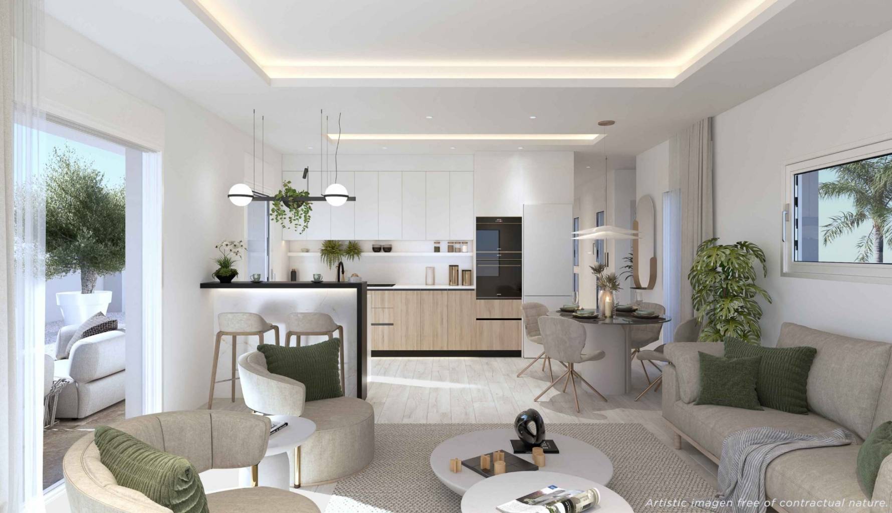 These newly built apartments in Los Alcázares (Costa Cálida) represent the ultimate expression of the Mediterranean lifestyle. Designed for those seeking spaciousness, privacy, and exclusivity, these homes combine contemporary design, comfort, and a privileged location next to the Mar Menor.