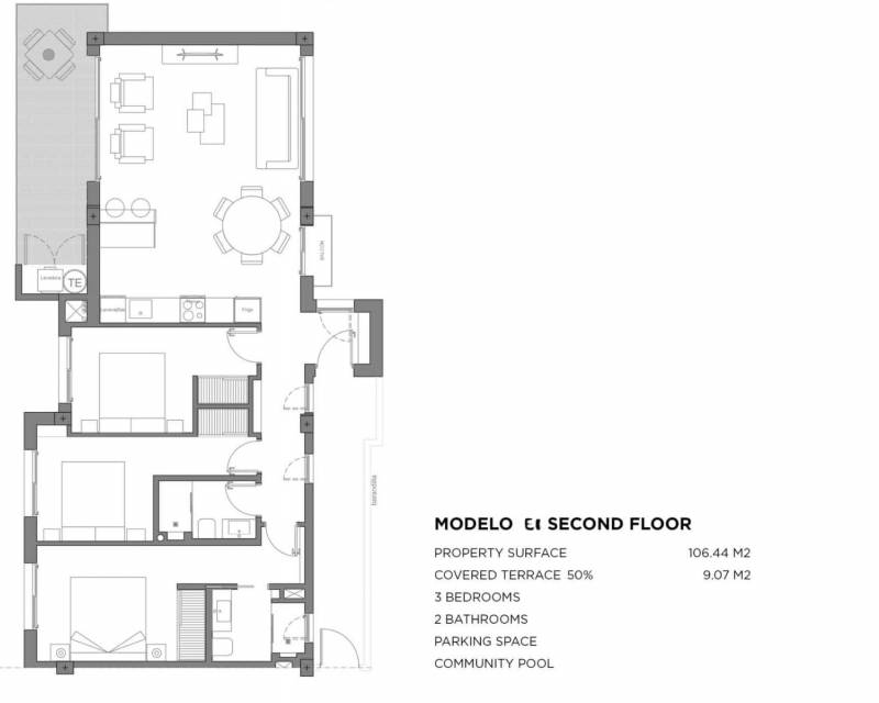 Located in a private residential complex with a swimming pool and landscaped gardens, these apartments boast high-quality finishes, including low-emissivity double glazing, motorized blinds with thermal insulation, electric underfloor heating in the bathrooms, and private parking. The penthouses also include pre-installation for a jacuzzi, an outdoor shower, and a barbecue area, offering a space ready to enjoy from day one.