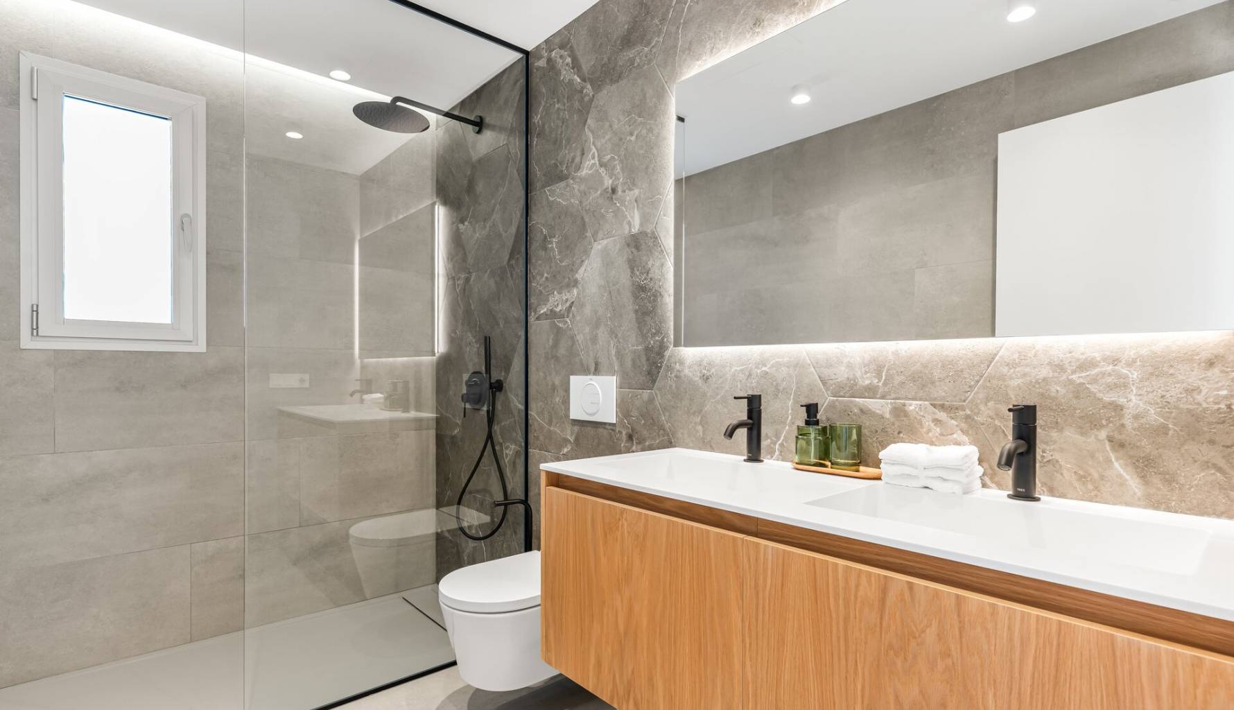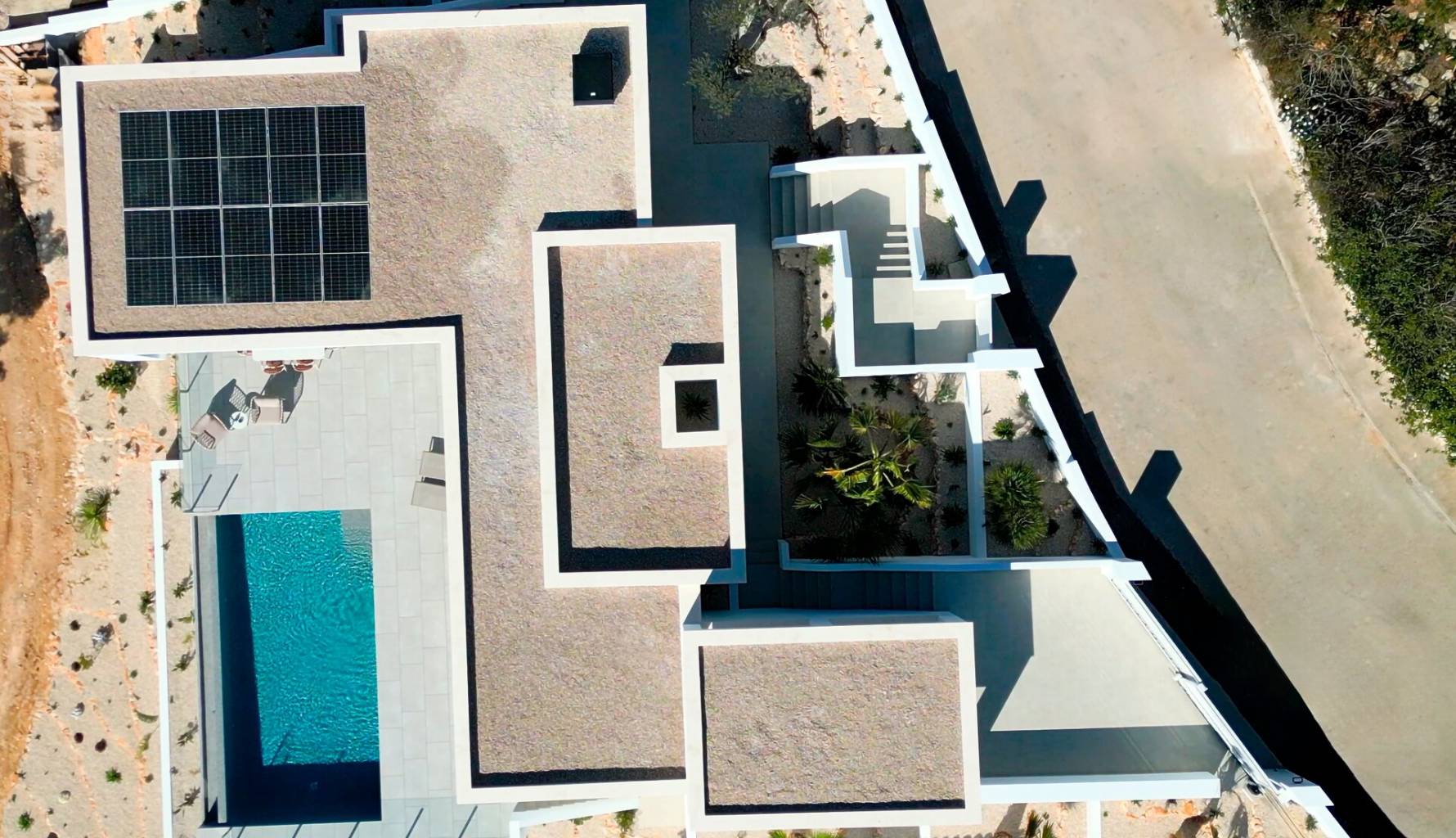 The villas feature an exterior design that maximizes the enjoyment of the natural surroundings. Each property has a private garden, perfect for creating a personal oasis. Additionally, the spacious terraces allow for enjoying the sea views and Mediterranean climate year-round. The inclusion of a solarium offers additional space for relaxation and outdoor entertainment. The private pool is a standout feature, providing an ideal place to cool off and enjoy the sun in total privacy.