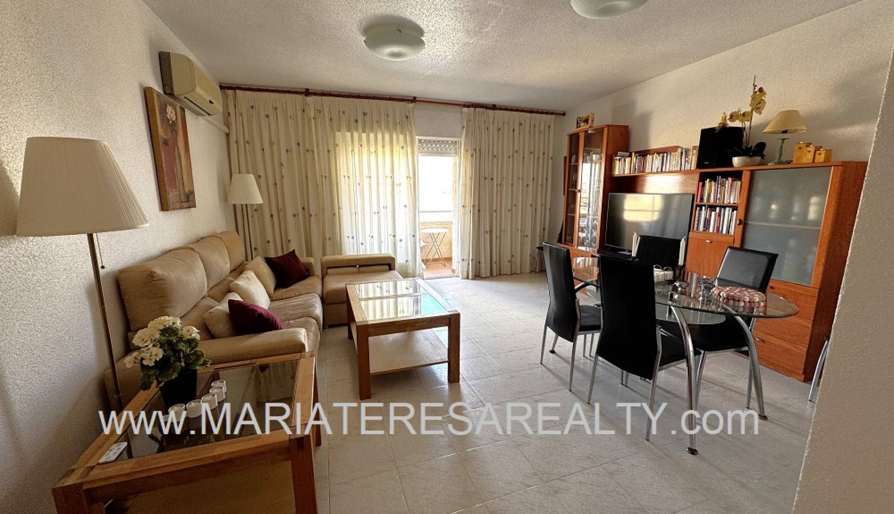 Charming 94m2 second-floor apartment without elevator in the heart of Los Alcázares, just 300 meters from the beach. Upon entering this apartment, we find a spacious, fully equipped and recently renovated independent kitchen with access to a large laundry area with floor-to-ceiling windows that provide plenty of light to both the kitchen and laundry area, a large double bedroom with a built-in wardrobe and air conditioning, a toilet with an extractor fan, a double bedroom without a built-in wardrobe, a bathroom renovated in 2020 and equipped with a shower and extractor fan, a large double bedroom with a built-in wardrobe and air conditioning, and a spacious separate living/dining room with access to a west-facing balcony, ideal for enjoying the afternoon sun. This home also has a large and spacious communal solarium. This home includes a parking space and a 3m2 storage room in the price.