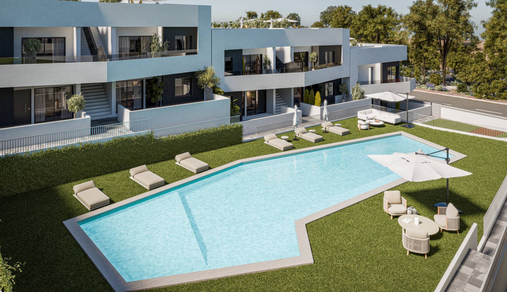 The outdoor areas of this residential complex in San Miguel de Salinas are designed to complement the Mediterranean lifestyle. Each home features a private garden, ideal for enjoying the sunny climate of the region. Additionally, the terraces provide extra outdoor space, perfect for relaxing or entertaining guests. For those looking to enjoy panoramic views, the solariums offer an elevated space from which to appreciate the natural surroundings of the residential complex. The combination of these outdoor elements ensures that each resident can enjoy an outdoor lifestyle in a private and secure environment.